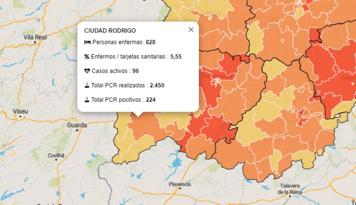 De esa cifra global, cerca de la mitad, 224, corresponden a la Zona Básica de Ciudad Rodrigo, que asimismo ha vivido un mes terrible con un total de 102 positivos (el 45,5% de todos los detectados desde marzo), cerrando el mes con 9 más, misma cantidad en la que se incrementa la cifra de personas enfermas. De igual modo, se contabilizan 5 casos activos más.