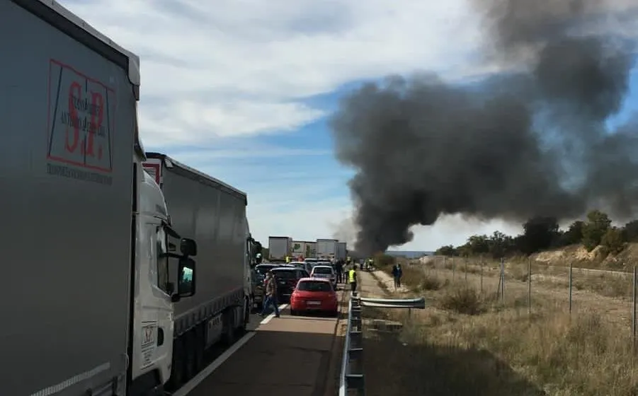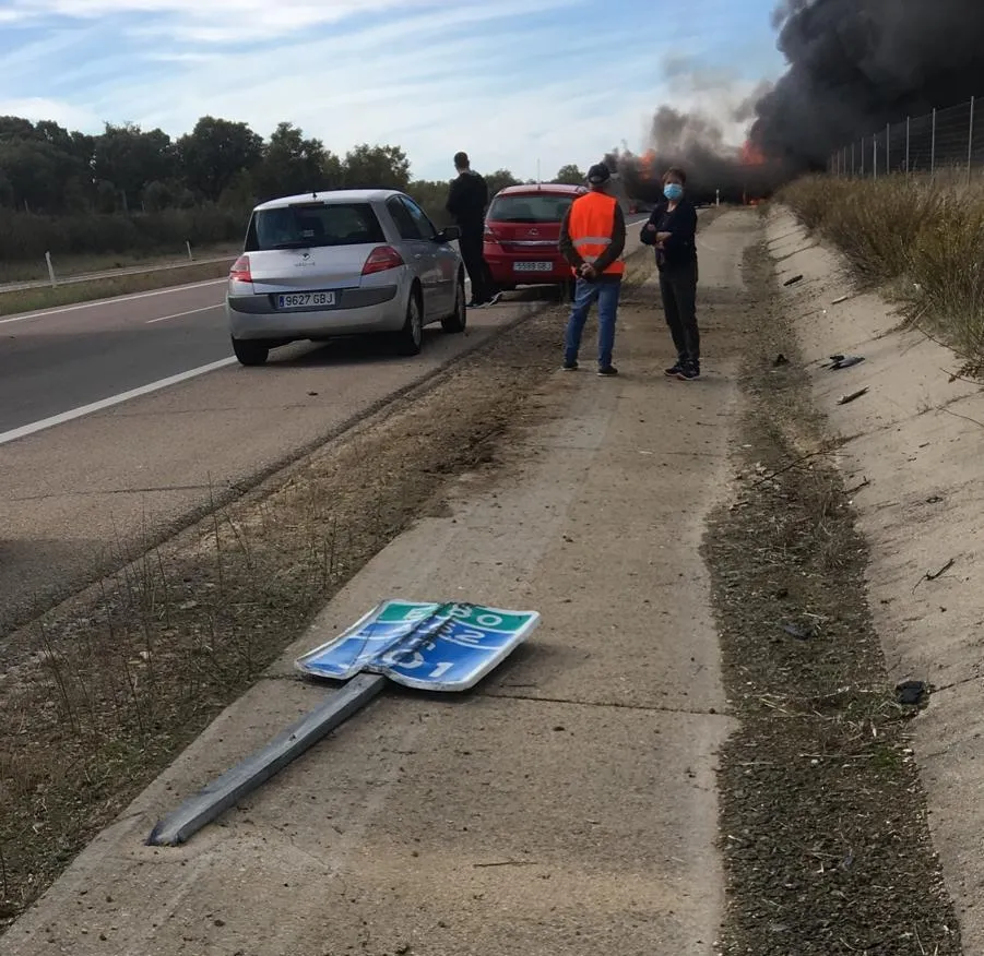 Hasta el lugar del suceso tuvieron que desplazarse los Bomberos de Ciudad Rodrigo para apagar las llamas, que generaron una gran humareda negra despertando la preocupación y el interés de todos los que iban circulando por la autovía, cuyo carril derecho evidentemente quedó totalmente cortado a la circulación por culpa del suceso.