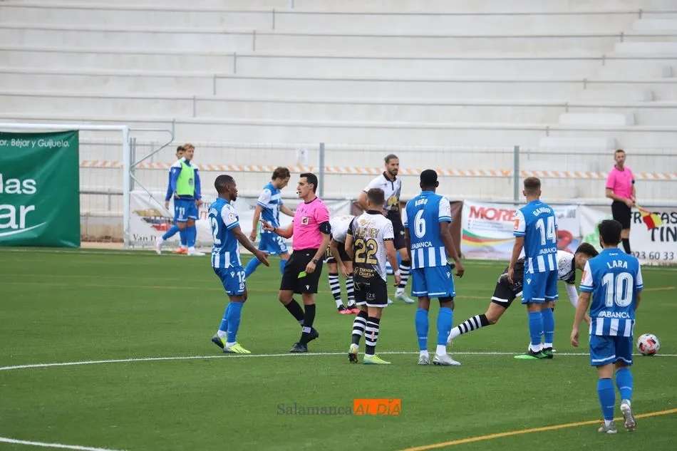 Pese a ello, los blanquinegros lograron reaccionar y no hundirse moralmente ante un rival superior sobre el papel. De hecho, en el minuto 19 de juego, Jon Rojo reclamó un penalti por mano, pero el colegiado no decretó absolutamente nada. La banda izquierda con el lateral y Carmona hizo daño al adversario en la tarde de este domingo, aunque no llegó a concretar en tanto a favor. Mientras, Álex Rey la tuvo en sus botas al filo del descanso para igualar la contienda. Finalmente, los de Fernando Vázquez se fueron con ventaja.