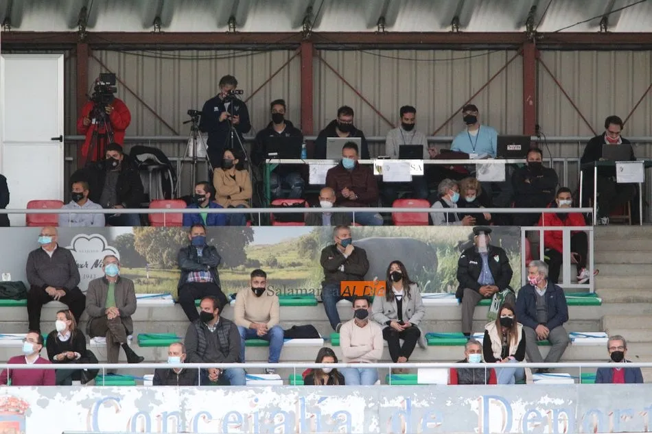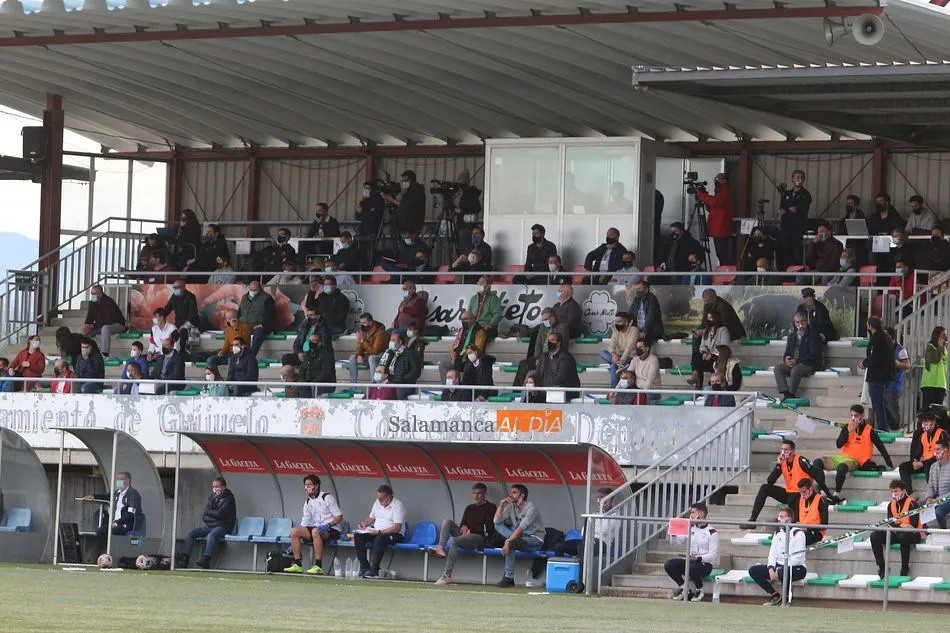 El Municipal Luis Ramos vivió este domingo por la tarde el derbi más frío de los últimos tiempos por la pandemia del coronavirus y todas las restricciones establecidas por su culpa. Tan solo 350 espectadores se dieron cita en las gradas del feudo chacinero para presenciar el Guijuelo ? Salamanca UDS.