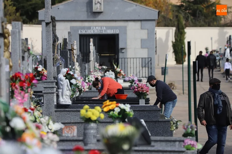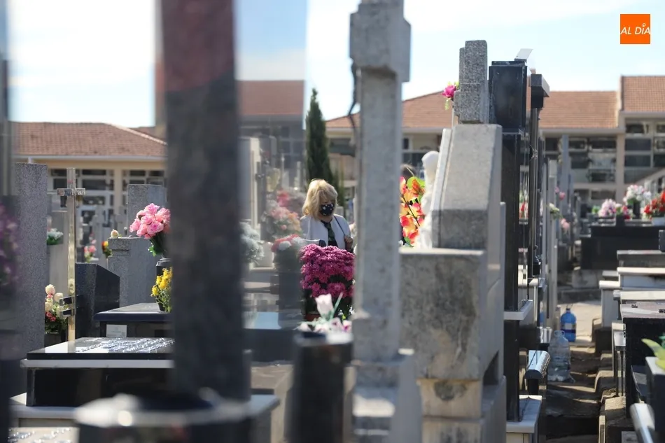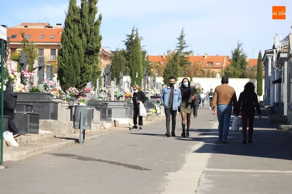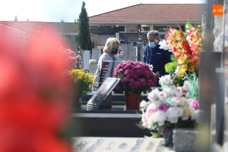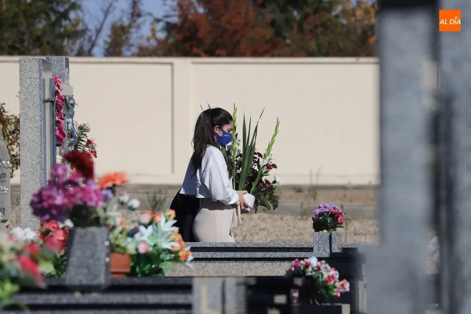 El Día de Todos los Santos se está viviendo con tranquilidad en los cementerios de Salamanca. Poco público y muy espaciado, es la estampa que ofrecen los camposantos en la mañana