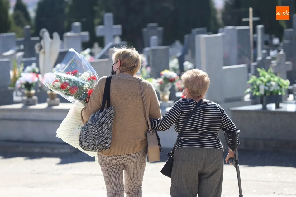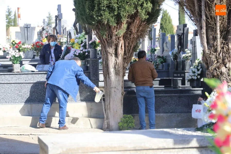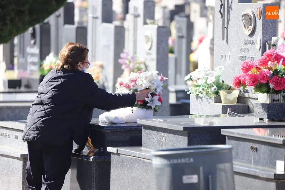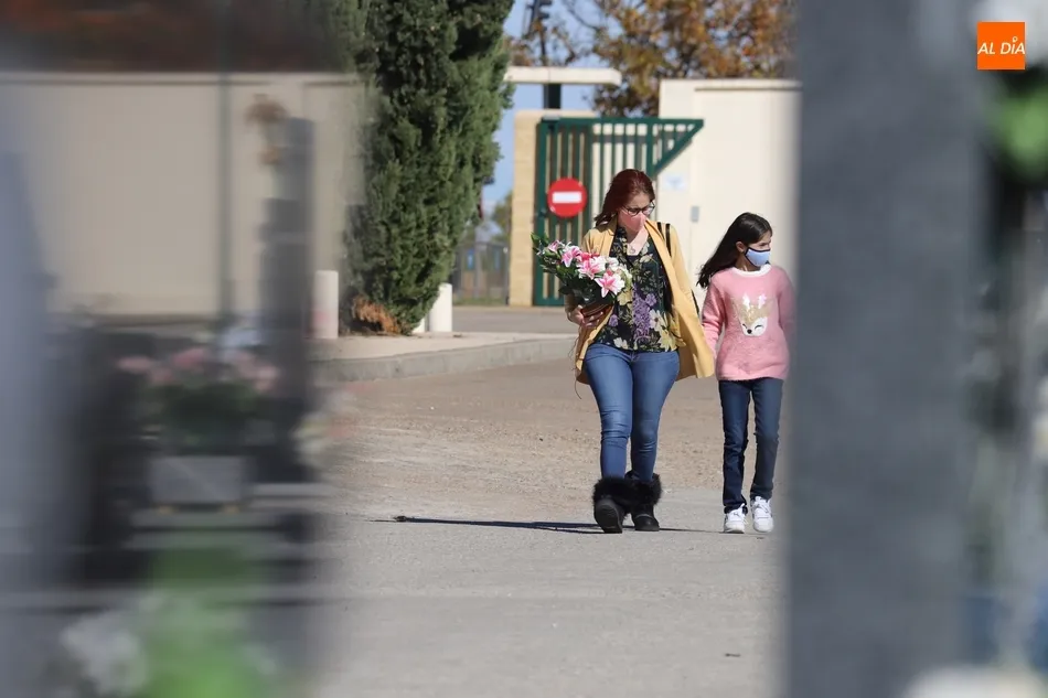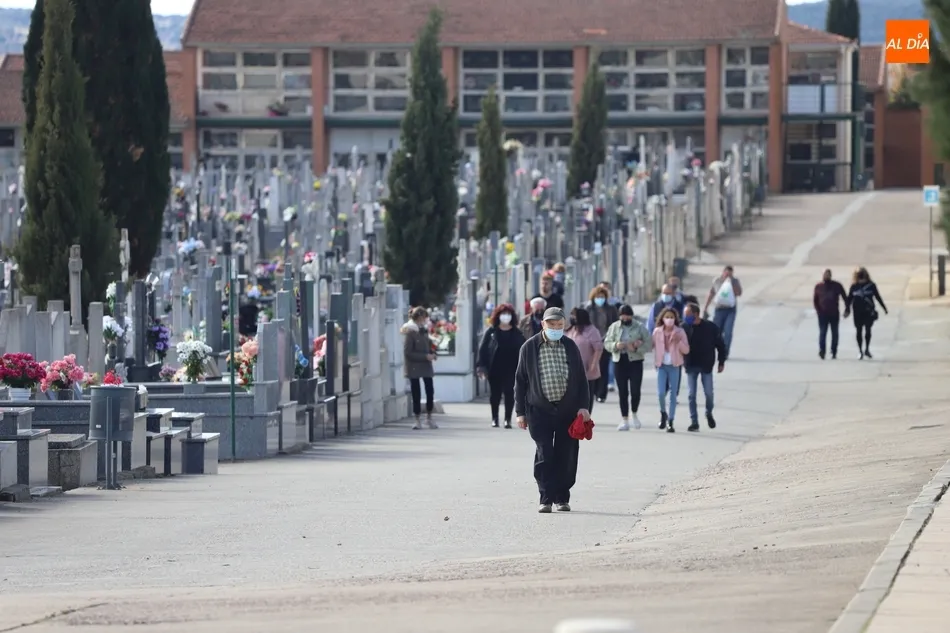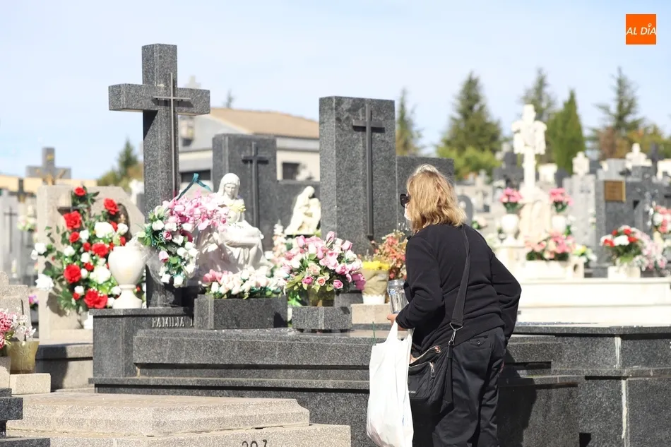 El Día de Todos los Santos se está viviendo con tranquilidad en los cementerios de Salamanca. Poco público y muy espaciado, es la estampa que ofrecen los camposantos en la mañana