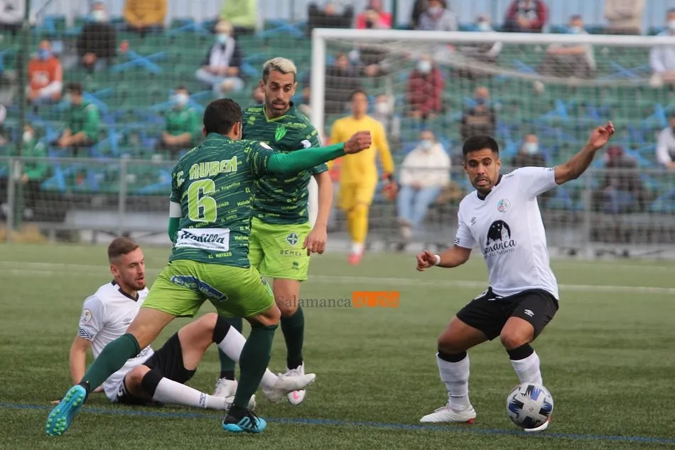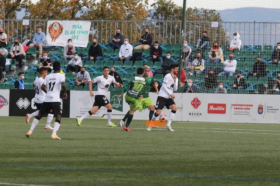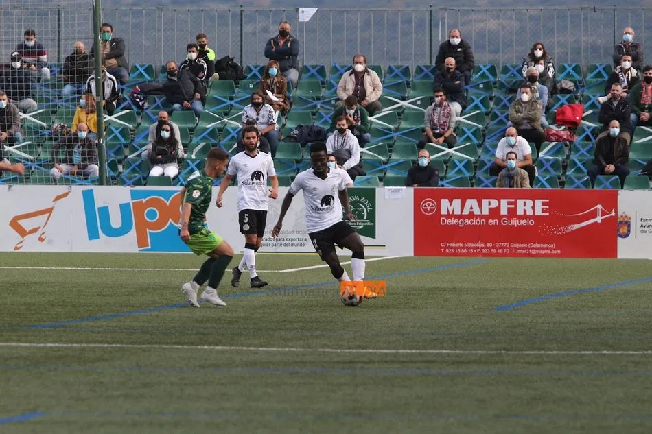 Egea movió el banquillo en busca de aire fresco, pero Pino siguió haciendo diabluras entre DeLorenzi y Lacerda, aunque Uxío, que volvió un año después al campo en el que se rompió el cruzado, tuvo en su cabeza el 2-1, pero su remate se marchó cerca del marco del meta europeo. Así, el Guijuelo sumó su primer triunfo del curso, se llevó el derbi y dejó tocado a un Salamanca UDS que sufrió su segunda derrota de la 2020/2021, curiosamente ambas fuera de casa en el Municipal y Riazor.
