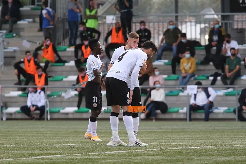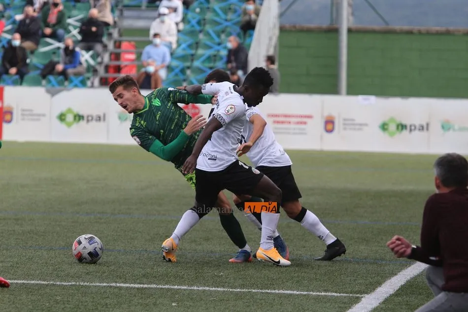 No obstante, los blanquinegros se rehicieron y un centro de Ohemeng se envenenó y se quedó a nada de acabar en gol. En el 28?, una mala salida de Sarkauskas le regaló el balón a Puma, que remató muy blando y Ojog despejó el esférico bajo palos. En la jugada siguiente, el olfato goleador de Pino salió a relucir y firmó el 1-0. Y para colmo de desgracias, Nacho López se fue lesionado y tuvo que reemplazarle Luis Martínez, que debutó con el primer equipo. Entre tanto, los dos centrales visitantes -DeLo y Lacerda- vieron amarilla para variar en lo visto hasta ahora, al igual que Ojog. Además, el Salamanca UDS tuvo el empate en el último suspiro, pero falló al no culminar en medio del barullo. Finalmente, 1-0 al descanso.