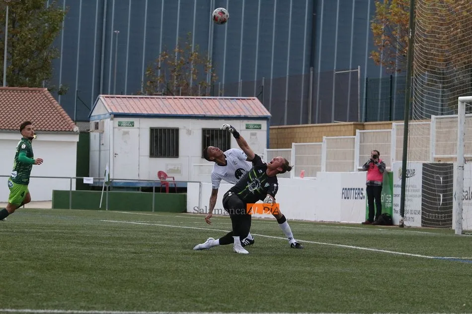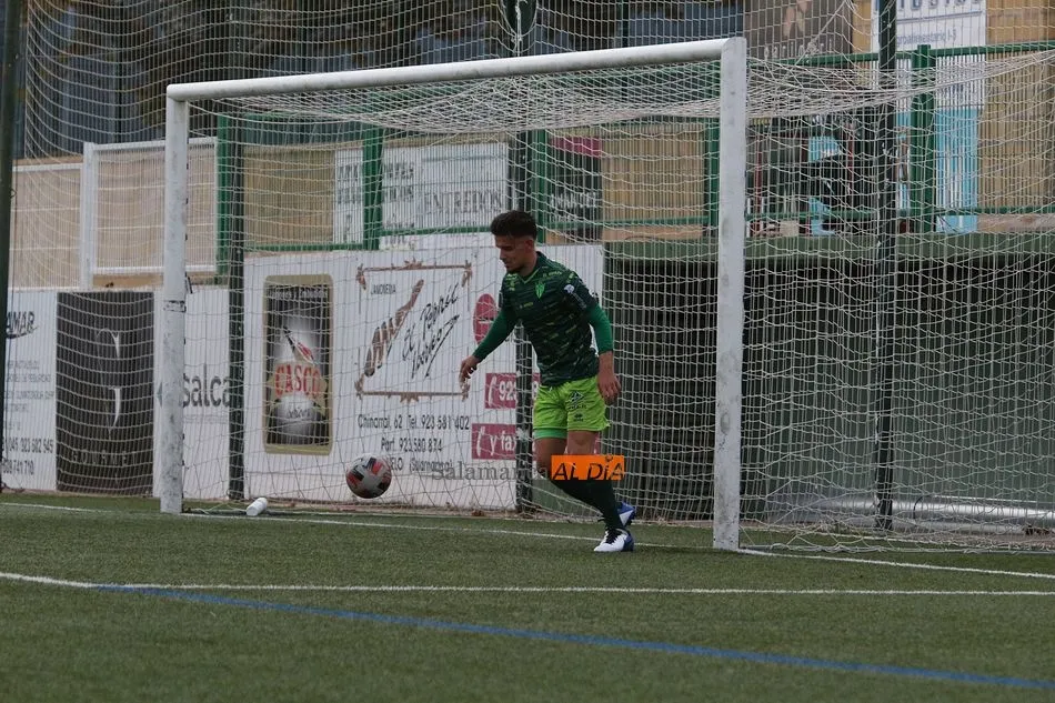 El duelo arrancó con un Guijuelo muy dominador y un Salamanca UDS a la expectativa para el intercambio de golpes al contraataque. De hecho, la primera acción de peligro del duelo llegó de la mano de los verdes, puesto que Nacho López tuvo que emplearse a fondo para desbatar un centro lateral que estuvo a nada de encontrar rematador. Cristóbal tardó poco en probar suerte y Owen contestó con un tiro desviado.