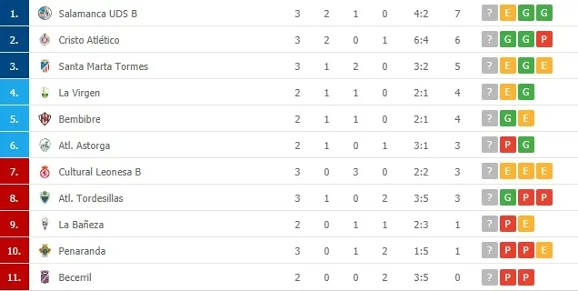 El filial del Salamanca UDS es el líder y único equipo invicto -con dos victorias- del subgrupo 8A tras tres jornadas de Liga con dos victorias y un empate, ya que firmó las tablas con La Virgen gracias a un gol de Keita en Las Pistas.