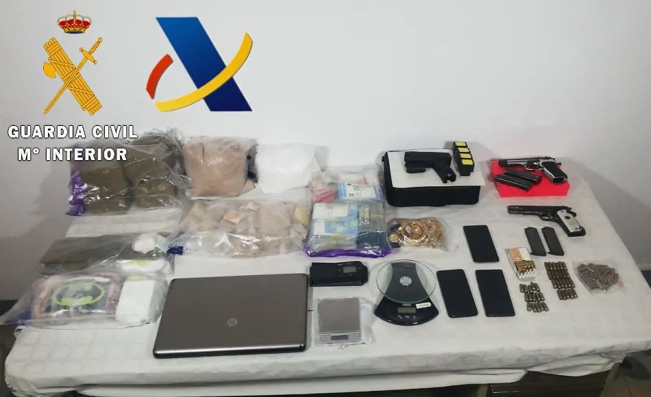 Se han incautado 2,5 kilos de cocaína, 2,1 de heroína, 4,3 de hachís, 2 armas de fuego, 2 pistolas eléctricas y 70.000?