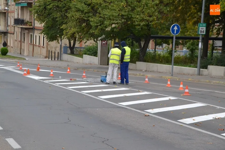 Operarios del Ayuntamiento de Ciudad Rodrigo estuvieron pintando en la mañana del lunes las marcas viales de la Avenida de España en su confluencia con la Avenida de Yurramendi, punto donde pueden llegar a coincidir hasta tres vehículos en la anchura de la calzada. Evidentemente, siempre es positiva la mejora de estas marcas, pero quizás en este caso hubiera sido mejor esperar al lunes por los riesgos que puede entrañar ese pintado.