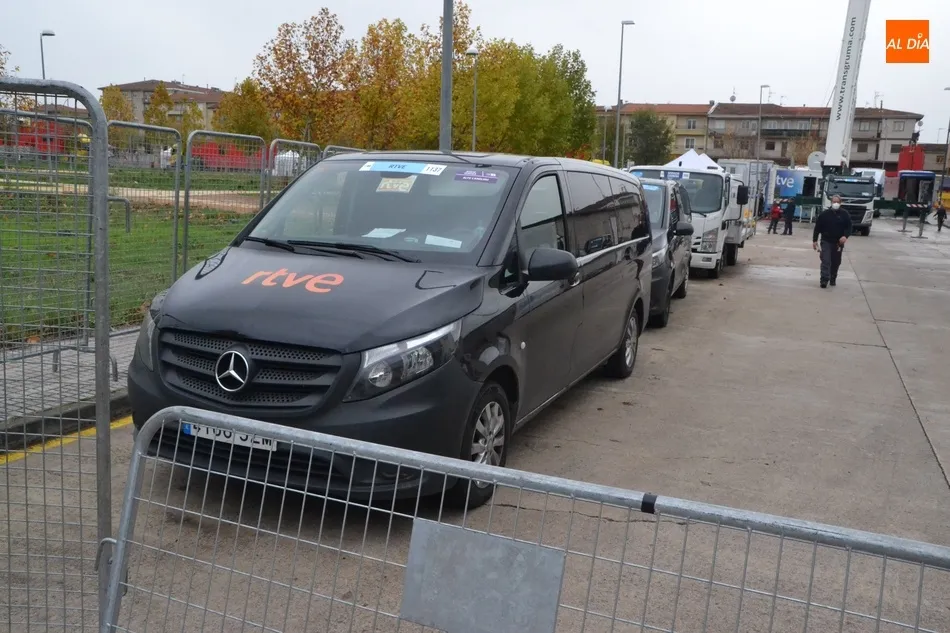 Por los alrededores, se fueron desplegando todos los otros elementos necesarios, como el camión para la retransmisión televisiva de TVE por parte de Carlos de Andrés y Pedro Delgado, el camión para el resto de medios de comunicación, el podio, o las carpas para las entrevistas televisivas. Asimismo, por el anexo Polígono de Los Chabarcones se fueron repartiendo los vehículos de la organización, todo ello con el tránsito del público por la zona bastante limitado.