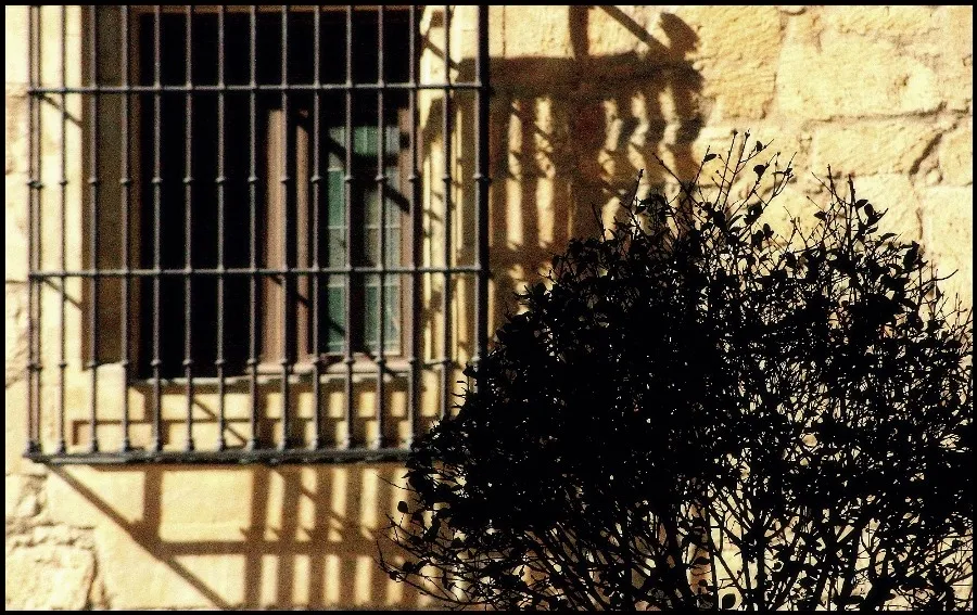 Sagrada celosía, la rejería salmantina, religiosa y profana, se despliega en hermosos balaustres, en frisos y remates plenos de imaginería. Es la crestería, la ola de la espuma en un plateresco que no solo sabe de piedra y de canteros. La ventana enrejada, ver y apenas tocar, nada más, nos deja un regusto de misterio, sabor de metal en la boca, sangre de la herida que mana tras el afilado bisturí de su flecha. Qué hermosa la prohibición de la clausura, la celosía del secreto, la geometría de la curva. Y el objetivo de Amador, mirada atenta, hace un arabesco en el aire, hermosa perspectiva de un arte milenario que nos hizo humanos, la espada, la reja del arado, el hierro medular del que todos estamos hechos.