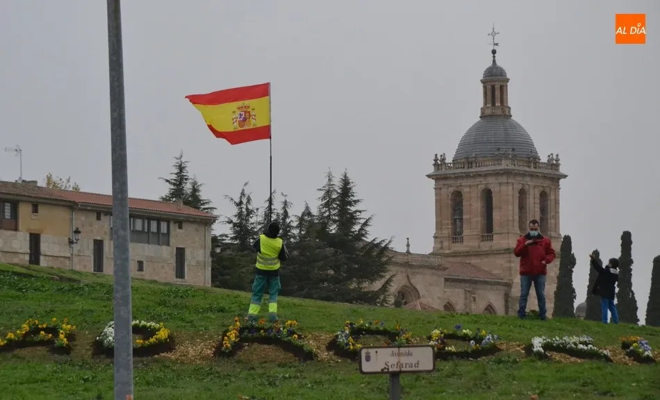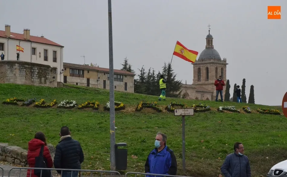 Por último, hay que apuntar que algunos espectadores portaron banderas en sus manos, principalmente de España (también se pudo ver una de Unionistas o una de Colombia en la línea de meta, animando al segundo clasificado, Carapaz). Asimismo, junto a la leyenda de ?Ciudad Rodrigo? en el glacis del foso se estuvo ondeando una bandera de España para llamar más la atención del helicóptero de televisión, uno de los al menos 5 helicópteros que sobrevolaron la ciudad en el momento de la llegada de la carrera.