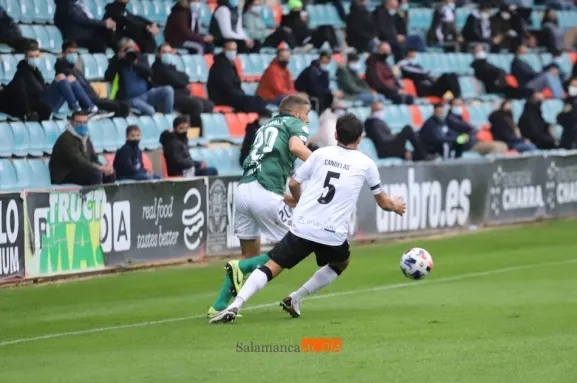 Alfonso Candelas, lateral izquierdo del Salamanca UDS, analizó el partido y la dura derrota encajada con el Ferrol en la lluviosa tarde de este domingo.