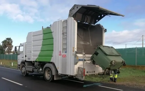 Para llevar a cabo esta operación, se está empleando un camión lava-contenedores