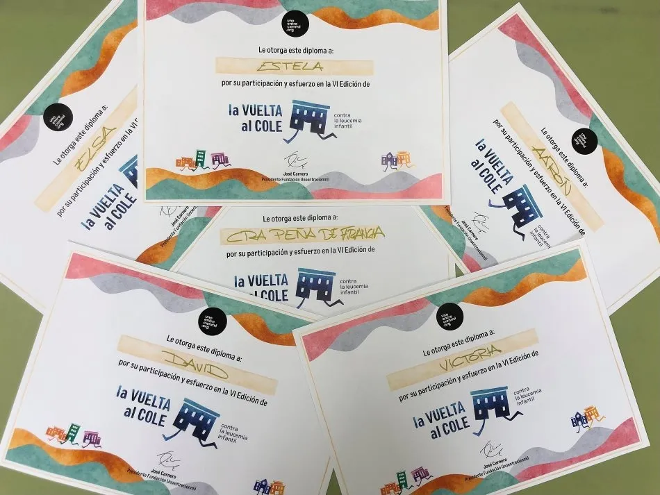 En el caso del CRA Peña de Francia, han seguido colaborando pese a la pandemia, porque ?somos muy poquitos, pero con un corazón enorme?, resaltando asimismo que se han involucrado alumnos, profesores y familias para aportar ?una maravillosa cantidad?. Como en años anteriores, la participación en esta carrera solidaria quedó acreditada mediante una serie de diplomas, pulseras, y como novedad, unas camisetas.