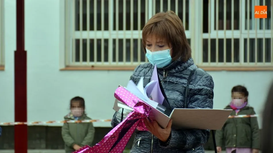 La presidenta del AMPA, Nuria Redero, lamentó que la situación provocada por la pandemia "no nos haya permitido hacer un homenaje como el que se merece una muy buena profesora y mejor persona". "No nos olvidaremos de tí, de verdad" añadió Redero antes de hacer entrega de una placa a la ex-directora. Muy emocionada, Maite Martín leyó el texto de la placa: "Gracias por las lecciones, por la paciencia y por el cariño a todos los alumnos del CPI Liminares" y dió las gracias a los niños y a los padres. "Recuerdo a todos los niños a los que ha dado clase en los 17 años que he dado clase en este colegio" manifestó la profesora.