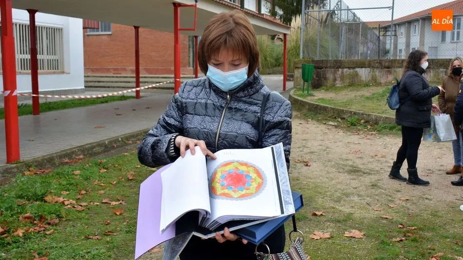 La emoción continuó con la entrega de un albun con los dibujos realizados por los 76 alumnos del colegio, dibujos alusivos a la maestra y sus enseñanzas, con referencias anecdóticas a "la olla" y "la sierra", dos motivos recurrentes de la profesora.