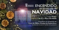 El Coro de Niños Ciudad de Salamanca amenizará el acto del encendido, aunque este año, con motivo de la pandemia, el concierto se celebrará en streaming y podrá seguirse en directo a través del canal de YouTube del Ayuntamiento. La agrupación, bajo la dirección de Naila Zakour, acompañada al piano por Raúl J. Ortiz Hierro, interpretará ?The Bells of Christmas Medley?, de Greg Gilpin; ?Adeste Fideles?, de Greg Gilpin; ?Merry Merry!?, de Mary Lynn Lightfood; ?The Virgin Mary Had a Baby Boy?, arreglo de Brad Nix; y ?Minka?, de Greg Gilpin.