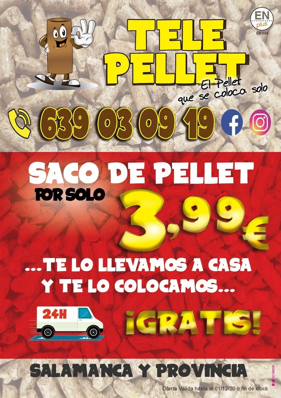 Telepellet distribuye sacos de pellet, en pequeñas y grandes cantidades a domicilio, tanto en casas como en negocios, dejándolos colocados según la necesidad del cliente, de esta manera no tendrá que cargar con el peso de los sacos ni perder el tiempo que conlleva ir a recogerlos a la fábrica, por el mismo coste. El tiempo de reparto es de 24 a 48 horas.