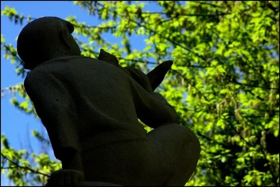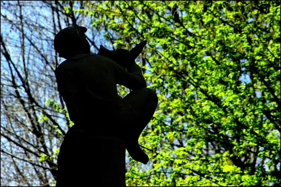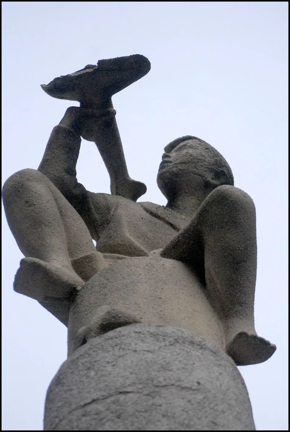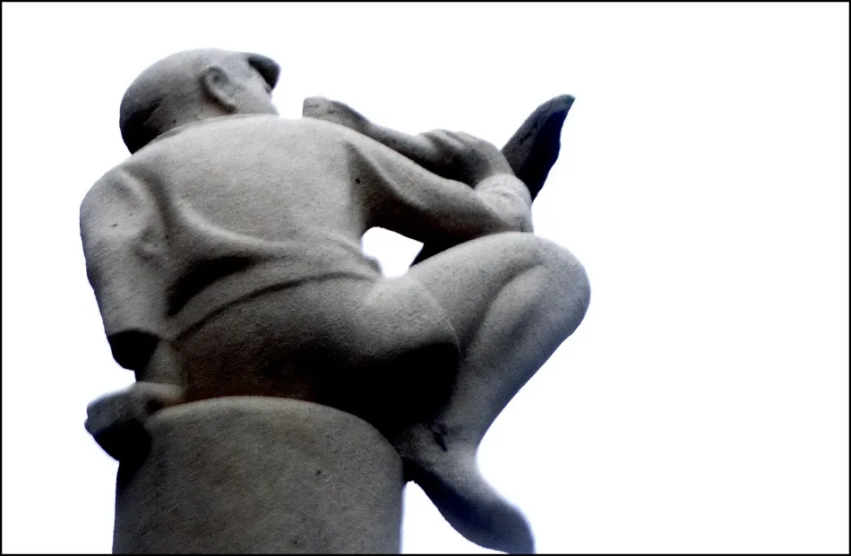 Tiene el fotógrafo vocación de vuelo, por eso se aferra a la cucaña y sube hasta lo alto para rendir homenaje a una de las estatuas más queridas, más presentes, y paradójicamente, más desapercibidas quizás de esta Salamanca tan plena de detalles que nos ciega y nos confunde. Porque el Paseo de Carmelitas, con su insólita vereda de verde, sus coníferas milagrosas, su ruta hasta el exquisito Parque de San Francisco, es tan sugerente que olvidamos, dejamos a un lado del paseo, del camino, al niño del avión.
