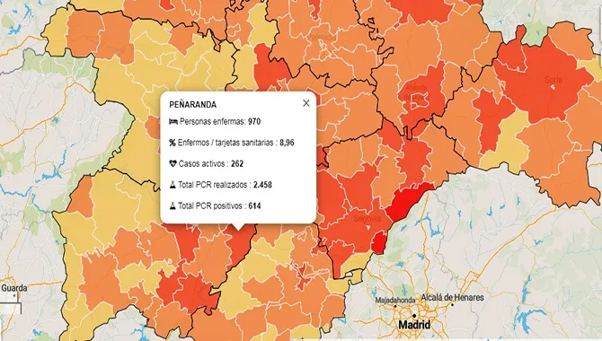 Los últimos datos facilitados sitúan en 262 los casos activos, cifras que elevan hasta el 8,96% el impacto en la población por número de tarjetas sanitarias en toda la zona, que nuevamente indicamos que acoge a todas las localidades dependientes del Centro de Salud de Peñaranda.