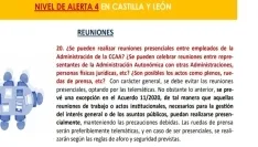 Además afirman que la normativa autonómica efectivamente establece que decretado el nivel de alerta 4, no permite la asistencia presencial a congresos, encuentros, reuniones de negocio, conferencias y eventos similares. (Punto 3.30 del Acuerdo 76/20, de 3 de noviembre, de la Junta de Castilla y León). Pero que se les olvida añadir, que la interpretación de la misma aclara que la celebración de órganos colegiados de los Ayuntamientos (Plenos y Comisiones) SI se pueden celebrar de forma presencial. ?Una verdad a medias, señores socialistas, es una mentira?, afirman los Populares en su comunicado.