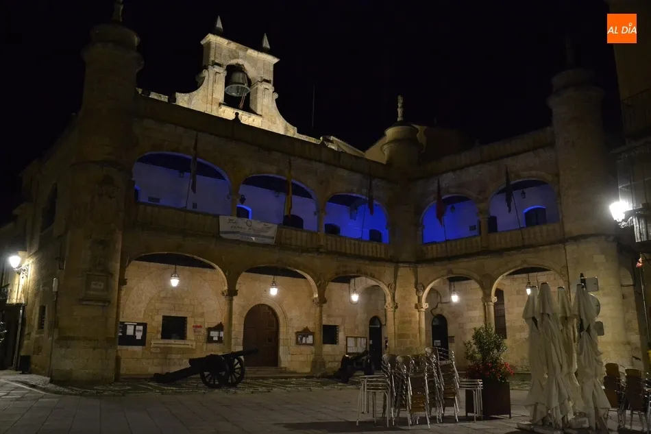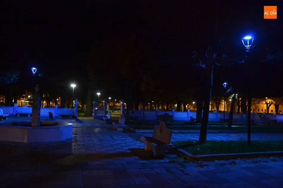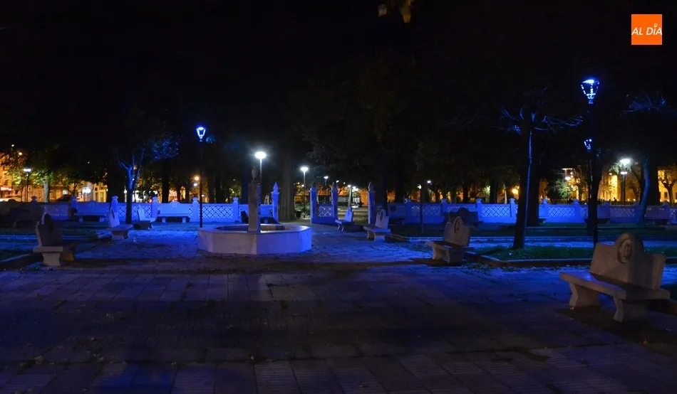 La Casa Consistorial y el Parque de los Tilos de Ciudad Rodrigo presentan durante este fin de semana una imagen muy diferente al caer la noche, ya que su color de iluminación ha virado de forma excepcional hacia el azul, con motivo del Día Mundial de la Diabetes que justamente aparecía en el calendario este sábado 14 de noviembre.