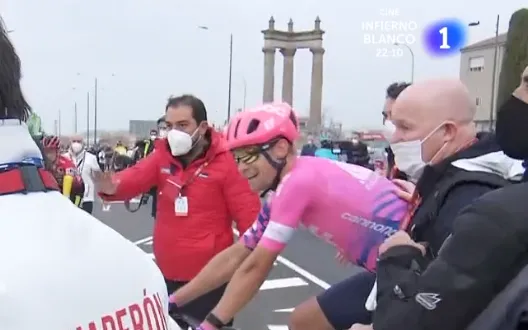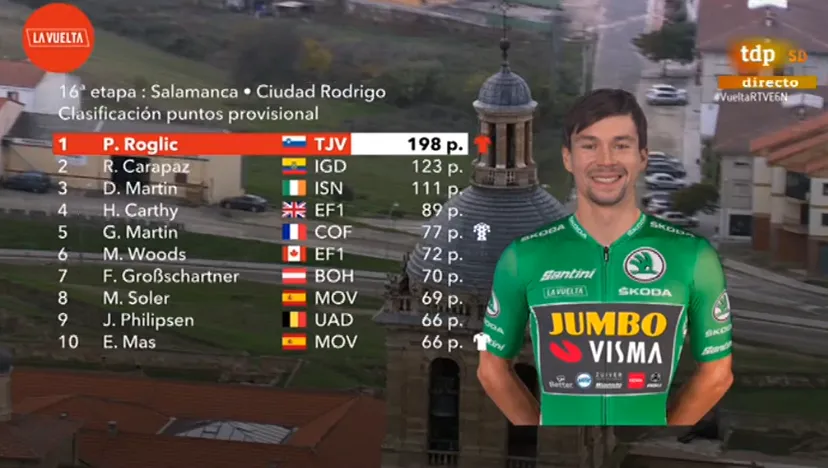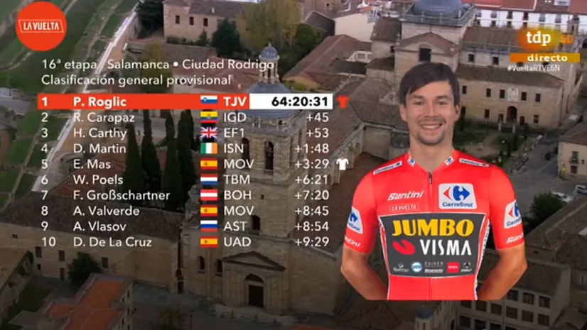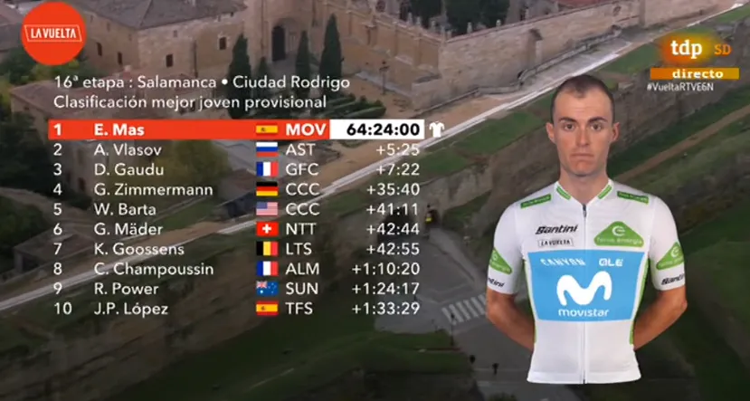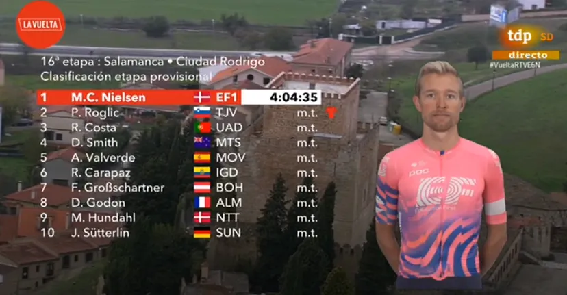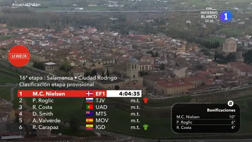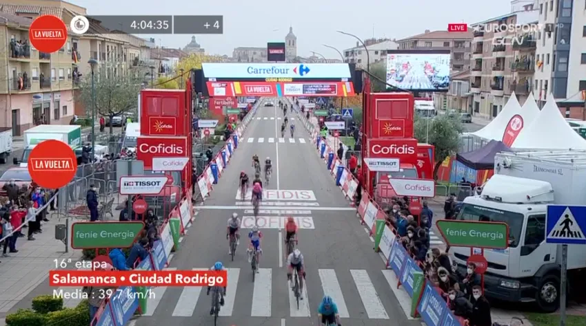 Sobre la llegada a Ciudad Rodrigo, fue curioso que en ambas retransmisiones tuvieron problemas con el ganador de la etapa. En Eurosport, dieron directamente el nombre de otro ciclista del mismo equipo, corrigiendo el error cuando vieron su dorsal en un plano aéreo. Mientras tanto, en Teledeporte, dieron su nombre sin estar convencidos del todo hasta que también vieron el dorsal.