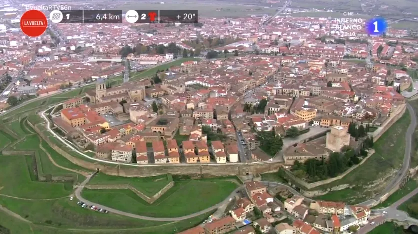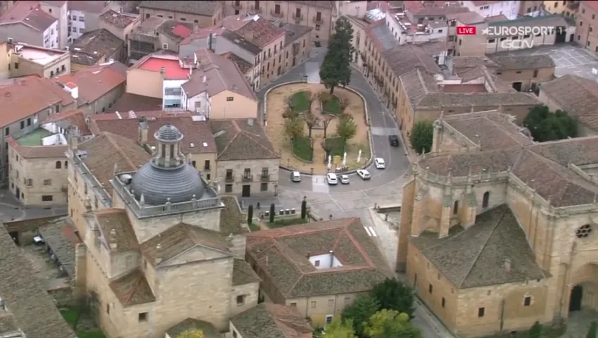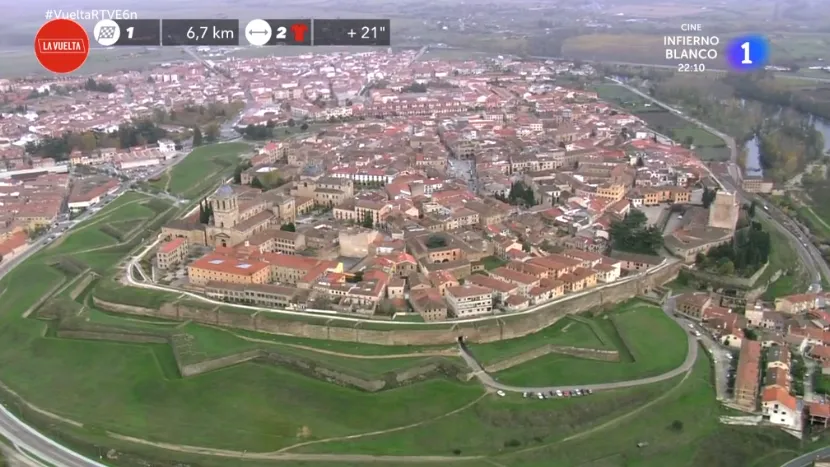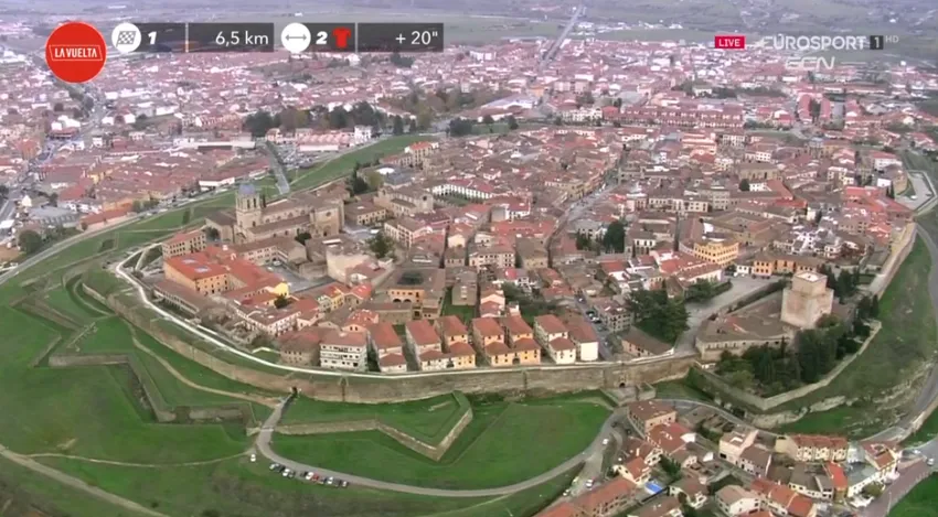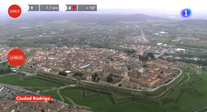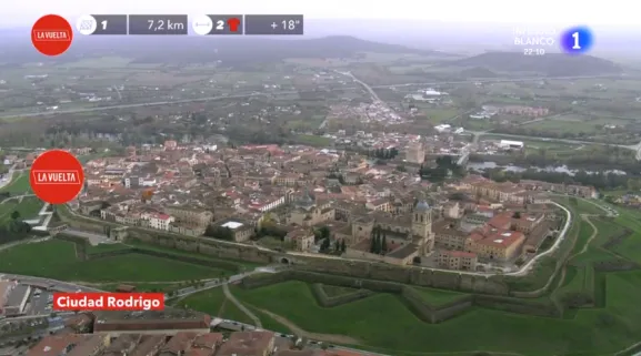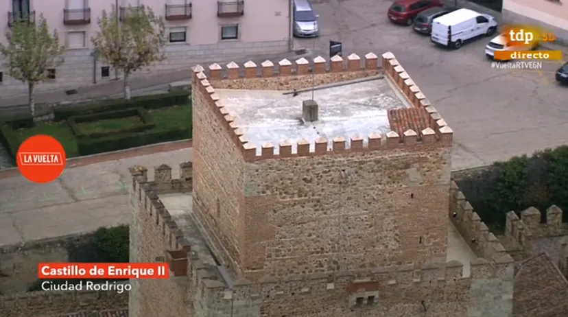 Aunque Carlos de Andrés y Perico Delgado arrancaron la retransmisión desde el camión de TVE con la meta y varios edificios de fondo, Ciudad Rodrigo no se asomó por la pantalla hasta que quedaban sólo 7,2 kilómetros de etapa, con un primer plano aéreo de unos segundos. Tras ver cómo los ciclistas pasaban por la pancarta de los últimos 7 kilómetros, se regresó a ese plano aéreo, apuntando en Eurosport ?qué bonito?, mencionando la muralla.