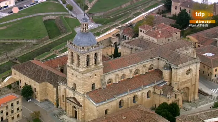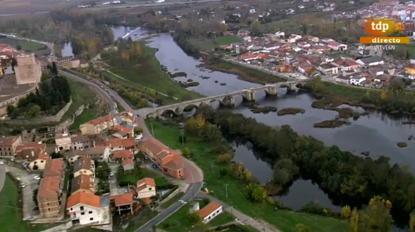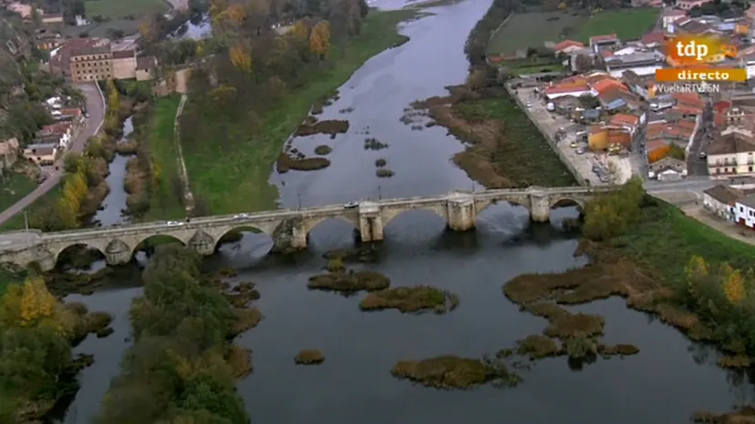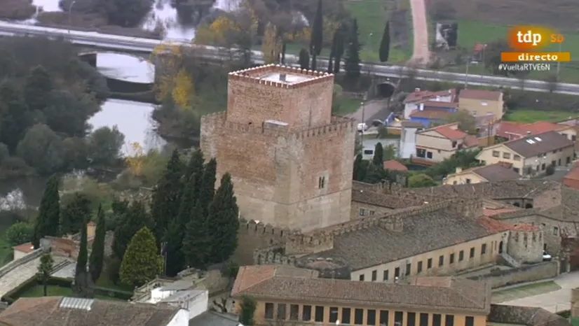 En La 1, Carlos de Andrés habló de ?bonita ciudad amurallada?, mencionando que su Catedral es monumento nacional desde 1889, y que está ?dominada por ese Castillo de Enrique II, a 30 kilómetros de la frontera con Portugal?, que fue usada por el narrador de Eurosport para decir en torno al ciclista que iba escapado, Cavagna, que ?como vaya así, a la mecha a la que va, se mete a Portugal?. Este ciclista fue atrapado entrando en Ciudad Rodrigo por el puente ?sobre la autopista? según Perico Delgado. Un poco antes, el narrador de TVE explicó sobre el Monasterio de La Caridad que perteneció a la Orden Premostratense, y que lo más antiguo data del siglo XVI.