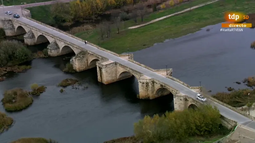Respecto a la señal televisiva post-etapa, los podios se fueron intercalando con las clasificaciones sobreimpresionadas sobre distintos rincones, como la Plaza Mayor, el río y el Puente Mayor, o el Castillo, del cual volvió a hablar Carlos de Andrés para explicar que es el más importante de la provincia, y que fue construido para defender la entrada del Puente, siendo ?un típico castillo leonés presidido por esa imponente torre cuadrada?. Pese a las vueltas que dio el helicóptero, finalmente no se vio la composición con el nombre de ?Ciudad Rodrigo? en el glacis de los fosos.