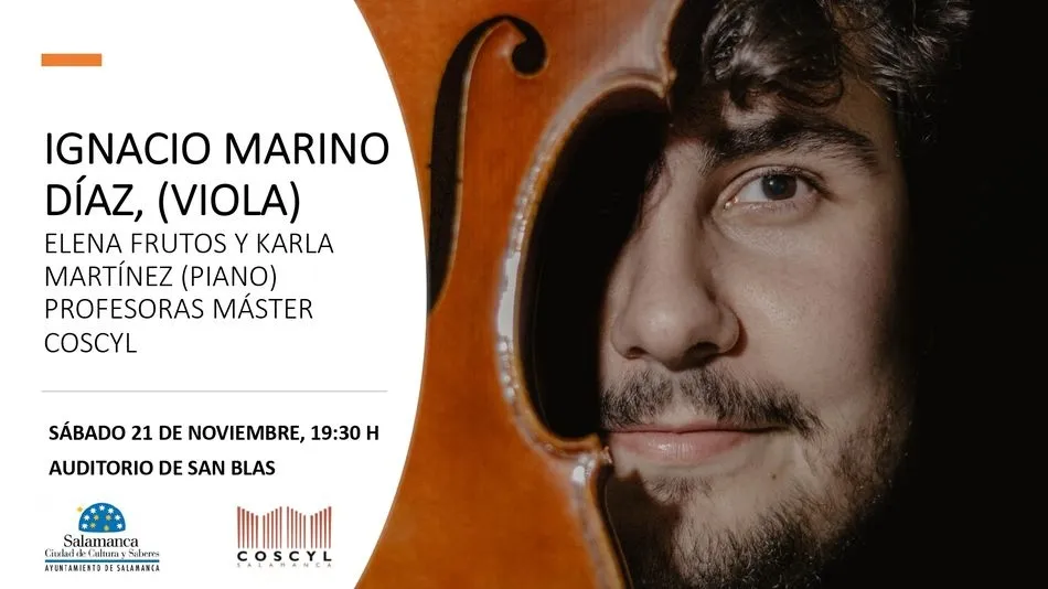 Ignacio Marino Díaz -alumno del Máster en Enseñanzas Artísticas de Interpretación Musical del Coscyl- ofrecerá un repertorio variado con composiciones de Fauré, Schumann, Vieuxtemps y Brahms, acompañado por las pianistas y profesoras del Máster del Coscyl Elena Frutos Fernández y Karla Martínez Rabanal. Su puesta en escena se llevará a cabo el sábado 21 de noviembre a las 19:30 horas en directo, en el Auditorio de San Blas.