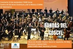 En el día de Santa Cecilia, patrona de la música y los músicos, las tres bandas del Conservatorio Superior de Música de Castilla y León nos sorprenderán con un concierto dirigido por los directores Roberto Bodí, Miguel Ángel Martínez y Rubén Prades. Interpretarán composiciones de Alcalde, Chueca, Navarro, Izquierdo, De Meij, Bernstein y Gómez Soler. El evento será el domingo 22 de noviembre a las 19:00 horas en el Centro de Artes Escénicas y de la Música (CAEM) de Salamanca.