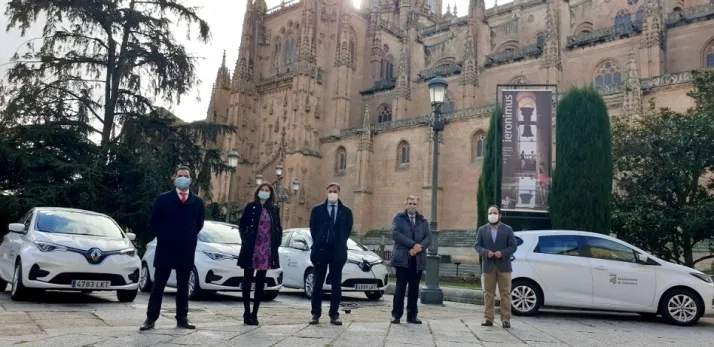 El alcalde de Salamanca, Carlos García Carbayo, ha presentado hoy los seis nuevos vehículos eléctricos que se han incorporado al parque municipal con un nuevo contrato de renting, dentro del compromiso del Ayuntamiento con el cuidado del medio ambiente y con hacer de Salamanca una ciudad a la vanguardia de la lucha contra el cambio climático.