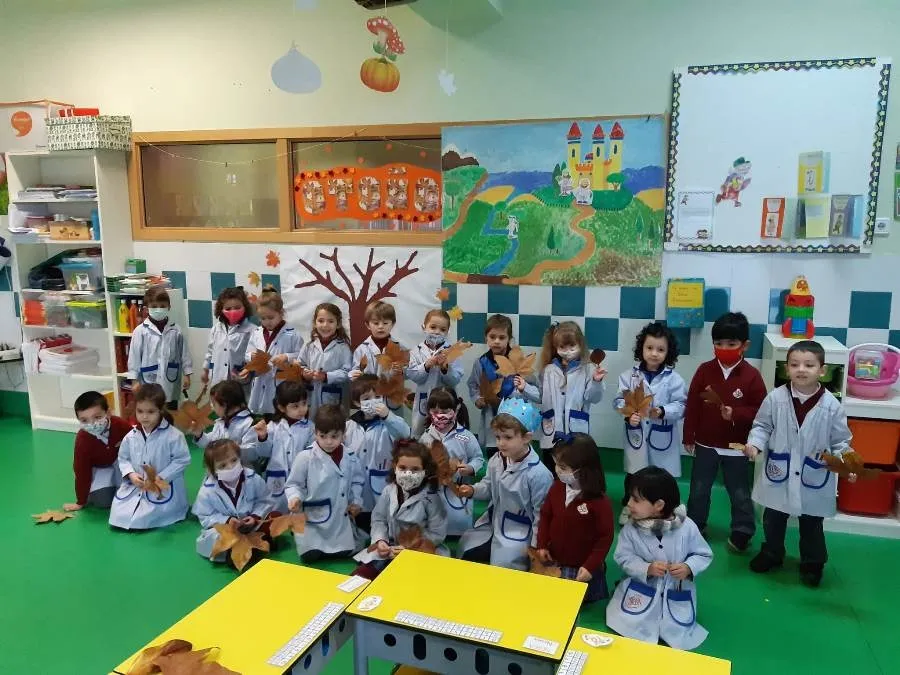 Los alumnos de Educación Infantil del Colegio San Juan Bosco han celebrado la ?Fiesta del Otoño?, para conocer esta estación, han llevado al centro hojas de los árboles para decorar la clase con su propio árbol y alfombra del otoño.
