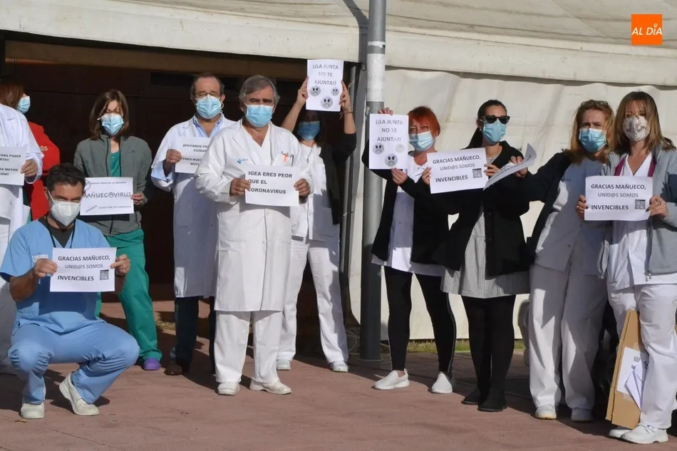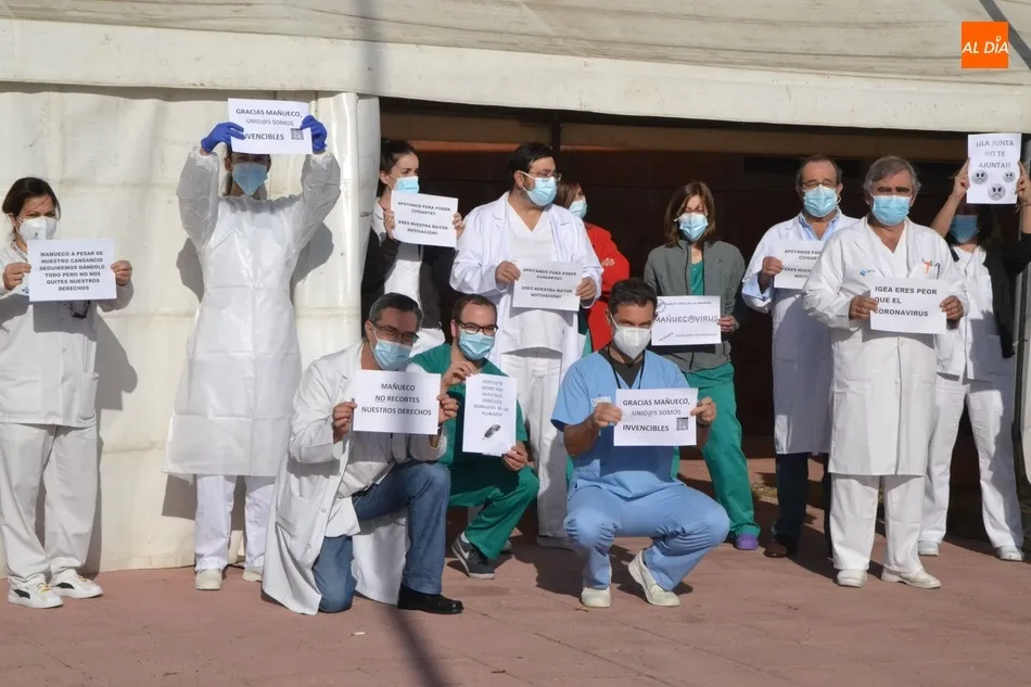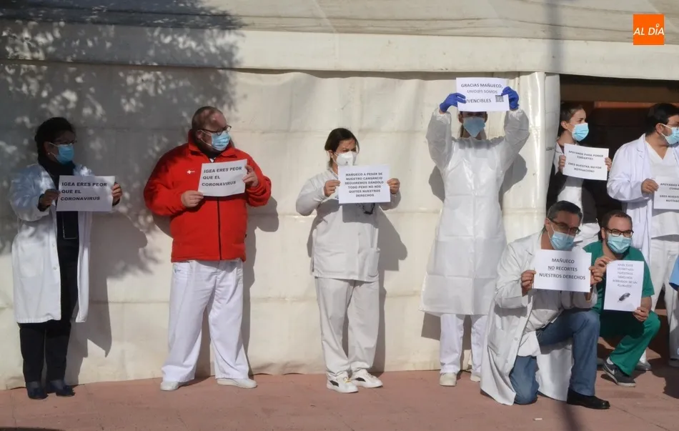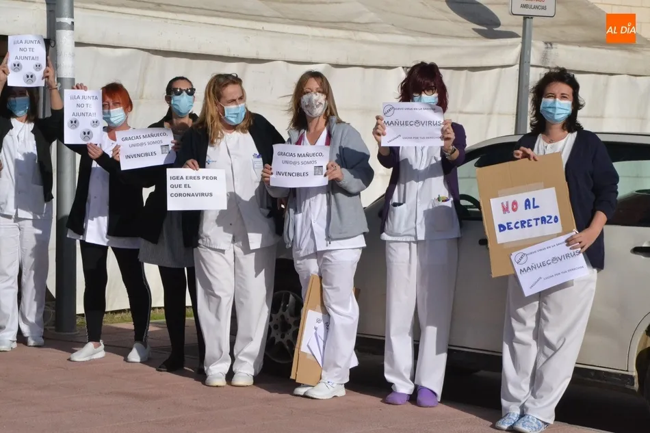 Desde el punto de vista de los trabajadores sanitarios, este Decreto, denominado ampliamente como ?Decretazo?, ?nos impone una pérdida de derechos abusiva y total, nunca antes vista, en condiciones de trabajo y personal?, según se resaltó en el comunicado leído por una de las profesionales del Centro, mientras el resto de sus compañeros sostenía distintos carteles de protesta con mensajes claros y directos como Mañuecovirus o Igea, eres peor que el coronavirus.