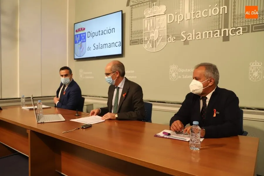 El presidente de la Diputación de Salamanca, Javier Iglesias, acompañado de los diputados de Desarrollo Rural y Empleo, Antonio Agustín Labrador y de Recursos Humanos, José María Sánchez, ha informado de la contratación de 202 desempleados de la provincia para cubrir puestos de trabajo con el fin de realizar obras y servicios de interés general dentro de la administración provincial.