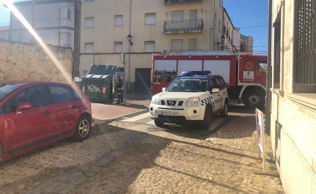 Los Bomberos de Ciudad Rodrigo tuvieron que movilizarse a última hora de la mañana del sábado ante el humo que empezó a salir de un contenedor de residuos orgánicos ubicado en la calle Cárcabas, en el barrio de San Cristóbal.