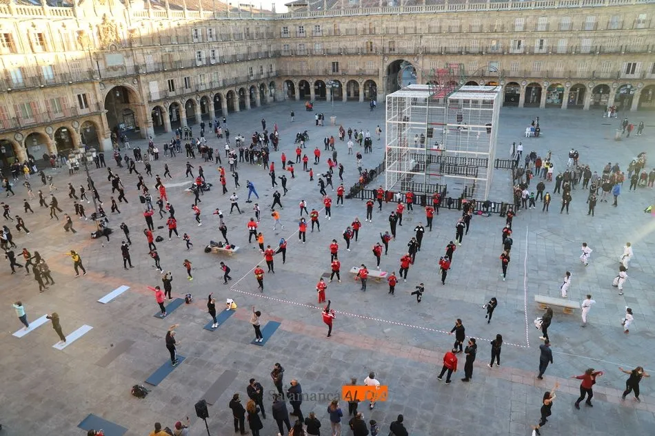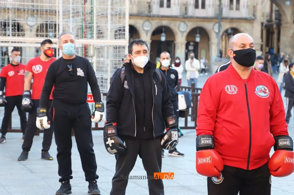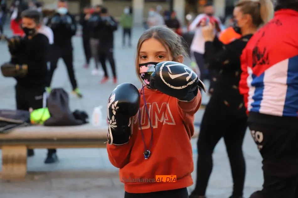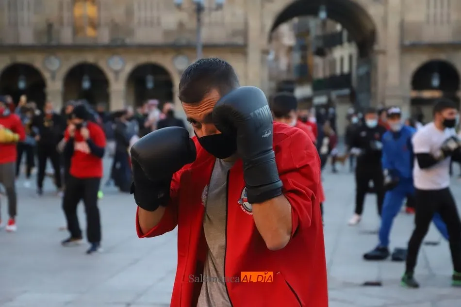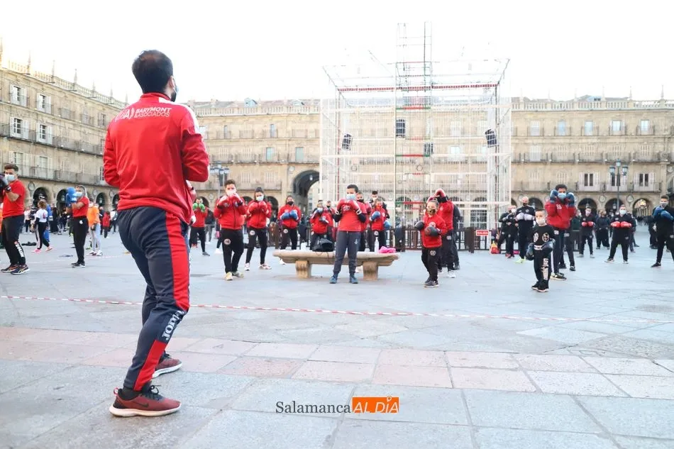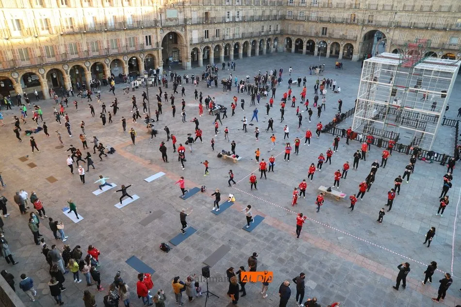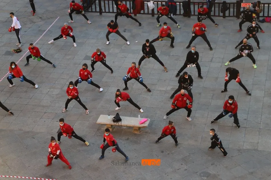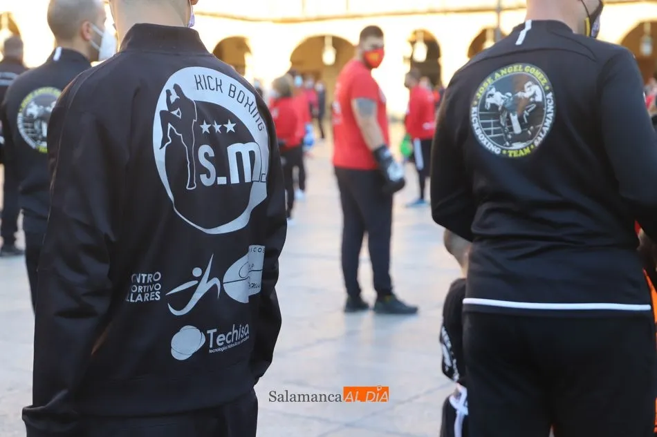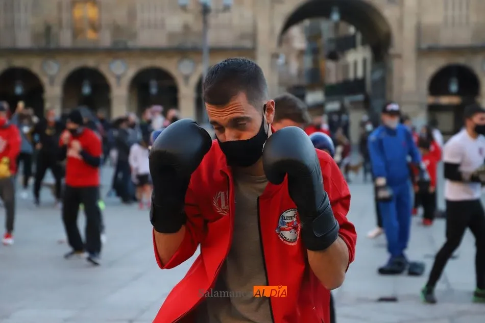 El sector de gimnasios e instalaciones deportivas se ha concentrado esta tarde en la Plaza Mayor de Salamanca para defender los derechos de más de 1000 familias que viven, de manera directa o indirecta, de este sector.