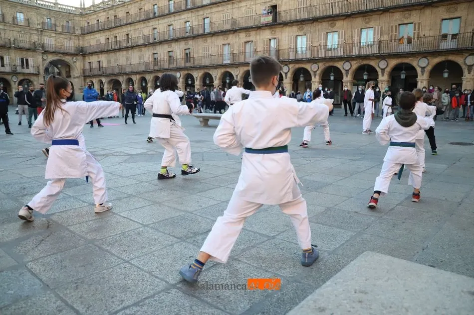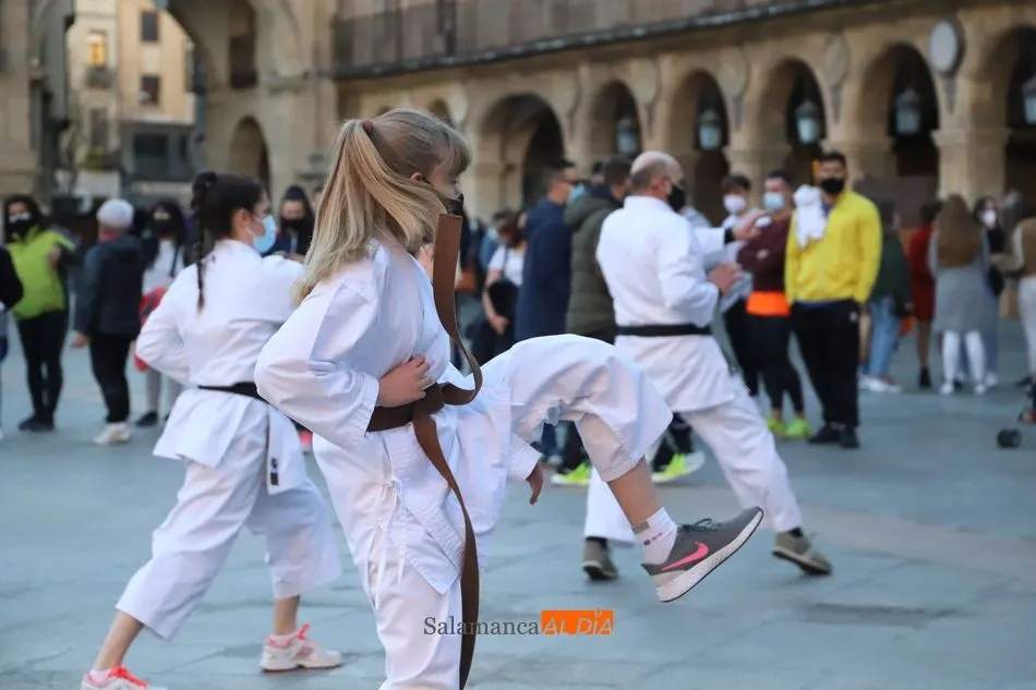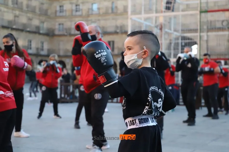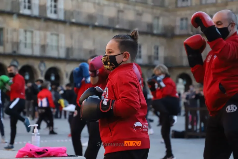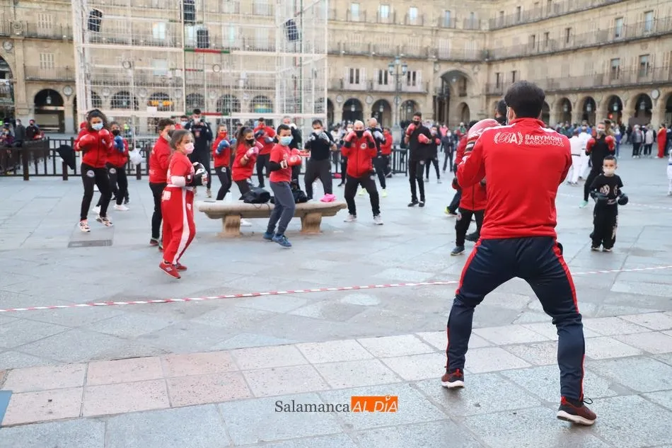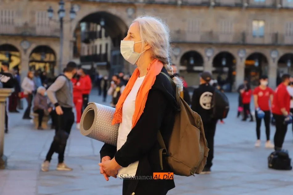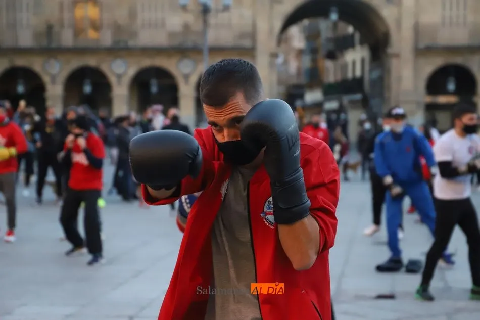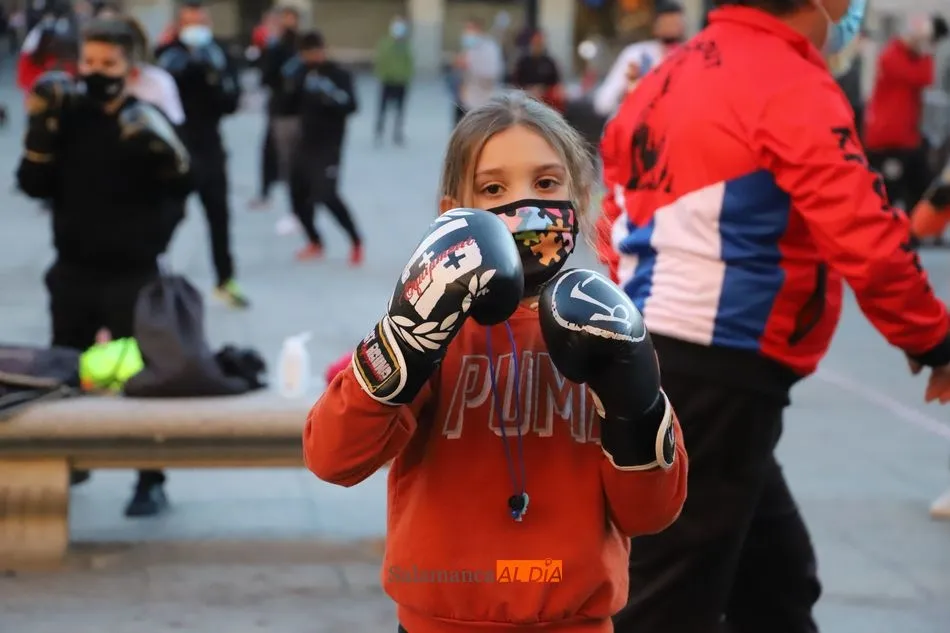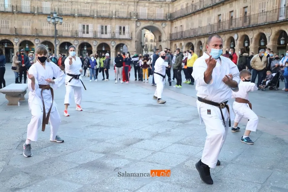 El sector de gimnasios e instalaciones deportivas se ha concentrado esta tarde en la Plaza Mayor de Salamanca para defender los derechos de más de 1000 familias que viven, de manera directa o indirecta, de este sector.