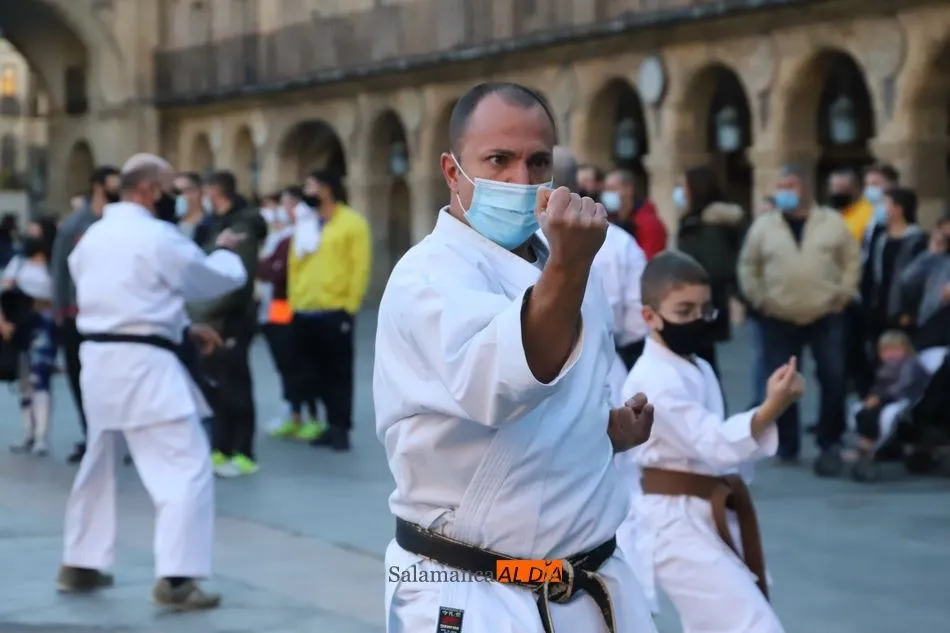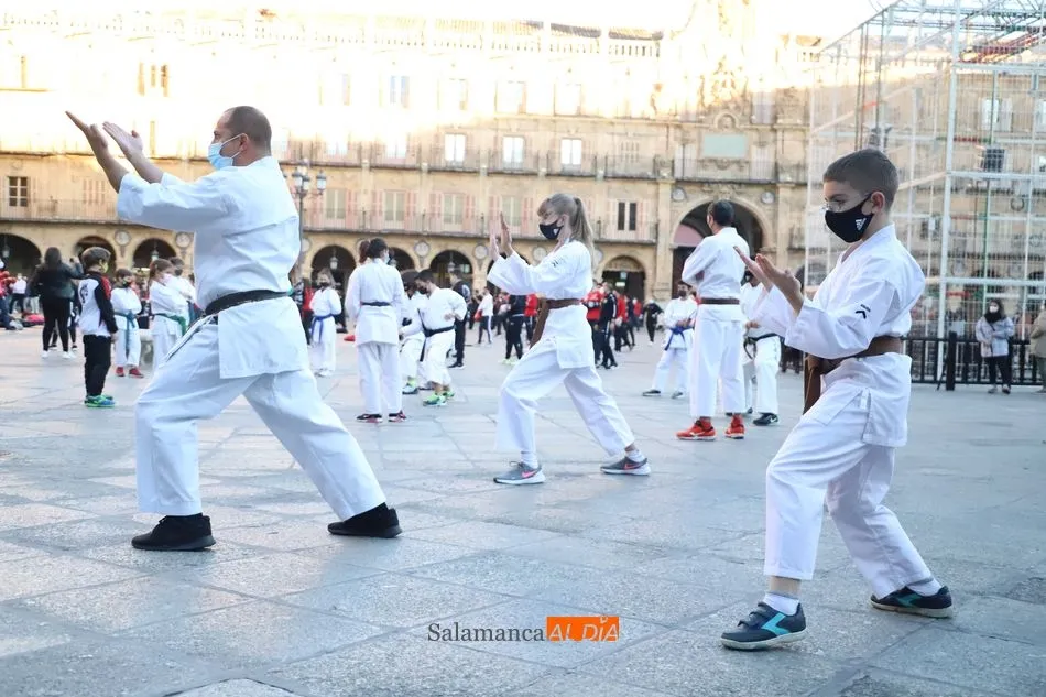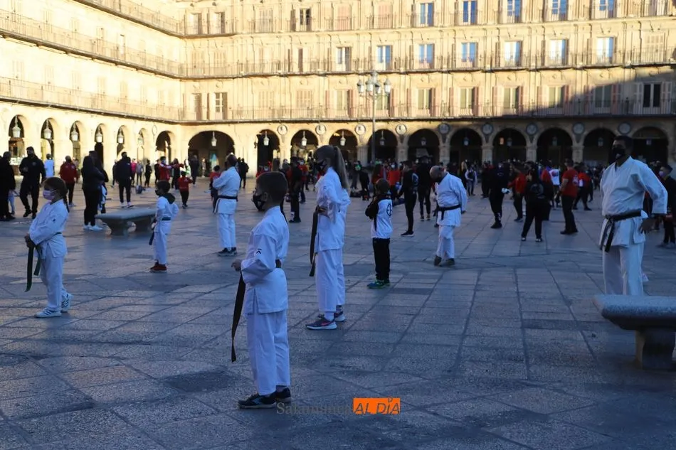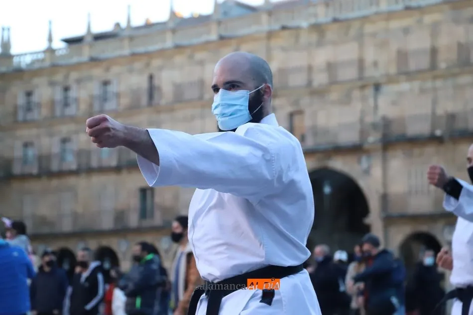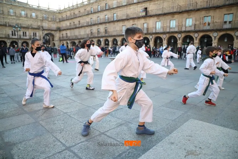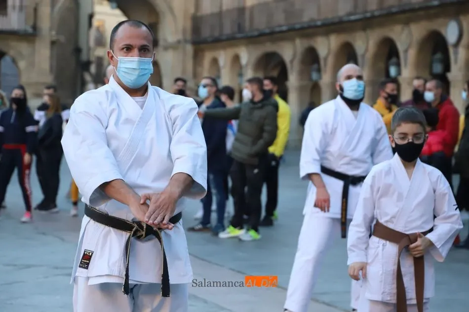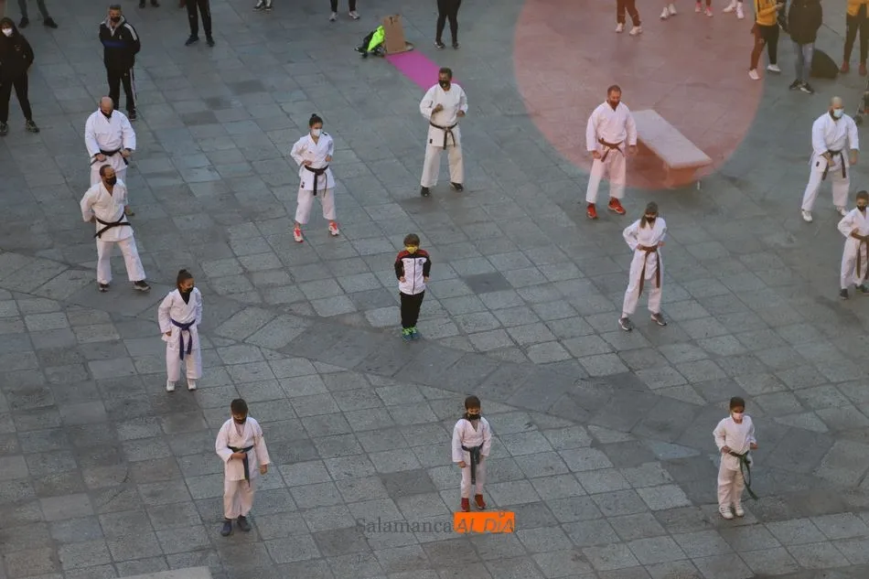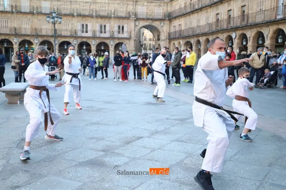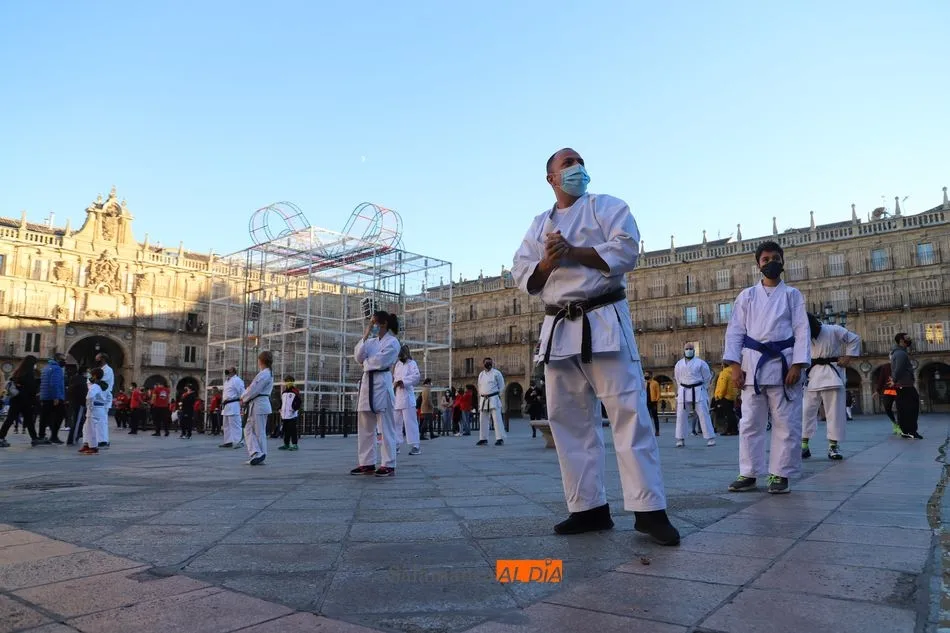 El sector de gimnasios e instalaciones deportivas se ha concentrado esta tarde en la Plaza Mayor de Salamanca para defender los derechos de más de 1000 familias que viven, de manera directa o indirecta, de este sector.