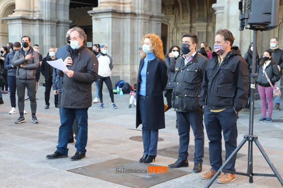 Tras el entrenamiento simbólico de varias actividades físicas se ha leído el manifiesto y ha sido entregado al alcalde, Carlos García Carbayo, por José Vicente Martín Galeano, Presidente de CES, acompañado de Javier Sanz y Santiago Escudero, representantes del sector, para trasladar las principales preocupaciones y soluciones que proponen los gimnasios e instalaciones deportivas para paliar los efectos sufridos por la crisis del coronavirus.