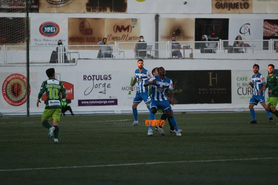 El Guijuelo logró un buen punto en el Municipal frente al todopoderoso Dépor (0-0). Los chacineros cuajaron un buen partido, pero no pudieron superar el muro de los de Fernando Vázquez, aunque los de Jacobo Montes no consiguieron escalar puestos en la tabla de clasificación.