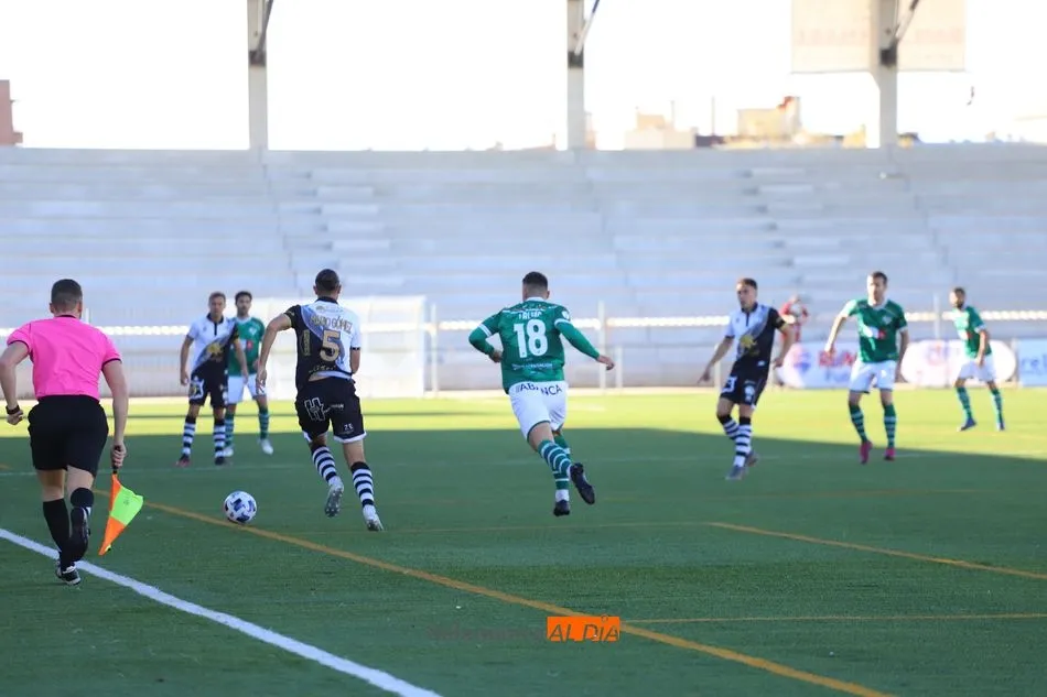 Con el paso del tiempo, el duelo bajó de revoluciones y ambos cuadros tuvieron sus opciones para ponerse por delante, aunque en el minuto 40 de juego se produjo un hecho sorprendente: el linier levantó el banderín, pero el colegiado dejó que la acción siguiera y se produjo el primer gol de la tarde, obra de un Héctor Nespral que se erigió como héroe en el primer tiempo. El desconcierto fue mayúsculo en un campo en el que nadie entendió lo que había pasado.