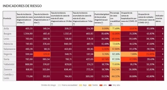 Esa incidencia de 400 casos/100.000 solo la rebaja, según los datos de la Junta de Castilla y León correspondientes a este miércoles, la provincia Segovia, con una incidencia de 330 casos, mientras que Ávila, está muy cerca de hacerlo, con 405 casos.