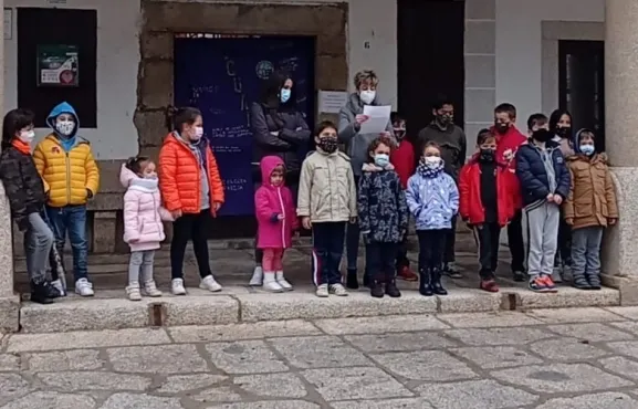 Madres, padres, niños y niñas de Villavieja de Yeltes se concentraron este miércoles en la Plaza Mayor de la localidad para decir ?no a la violencia de género?, actividad promovida por las monitoras del programa Eltur de la Junta de Castilla y León, para la creación de empleo en el sector turístico y cultural, y que han sido contratadas por el Ayuntamiento