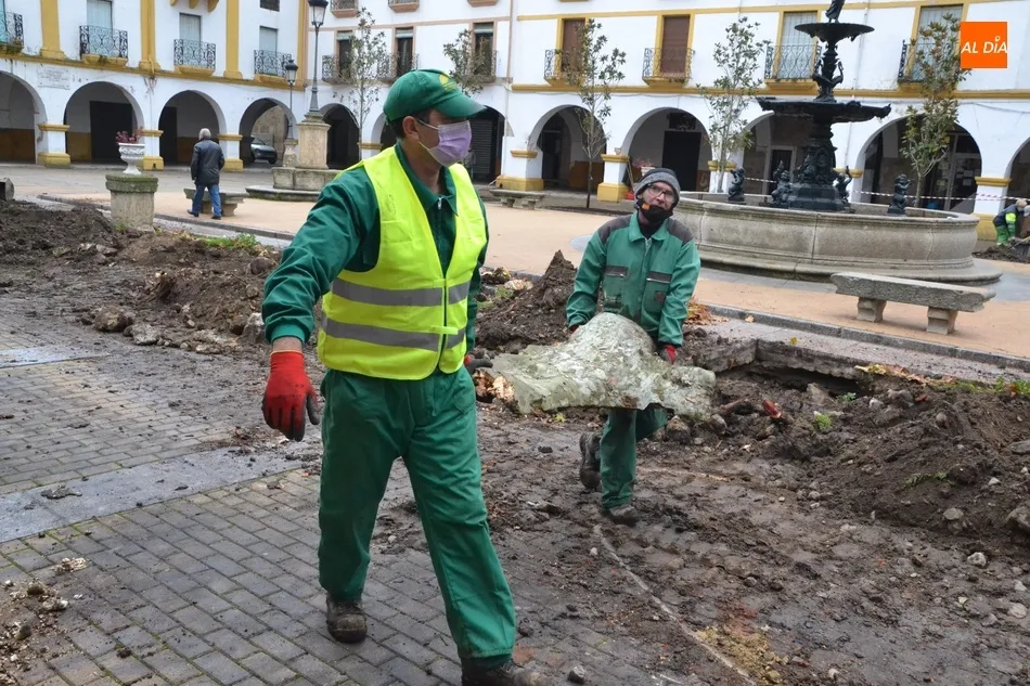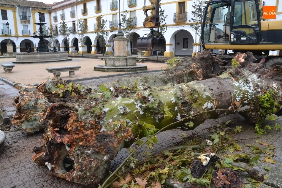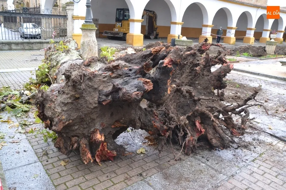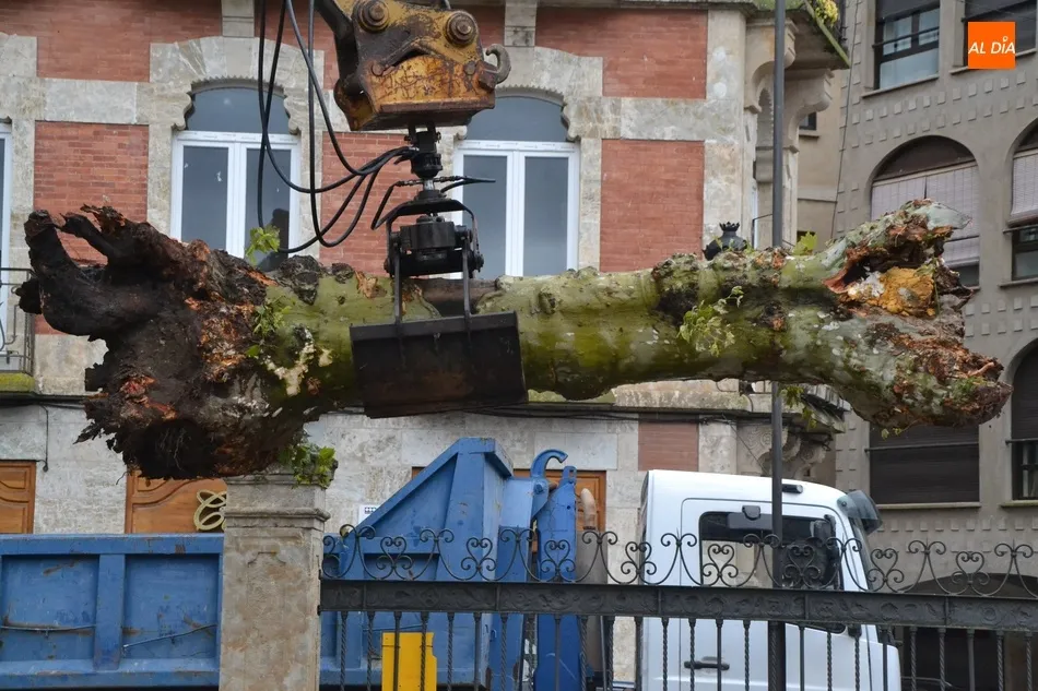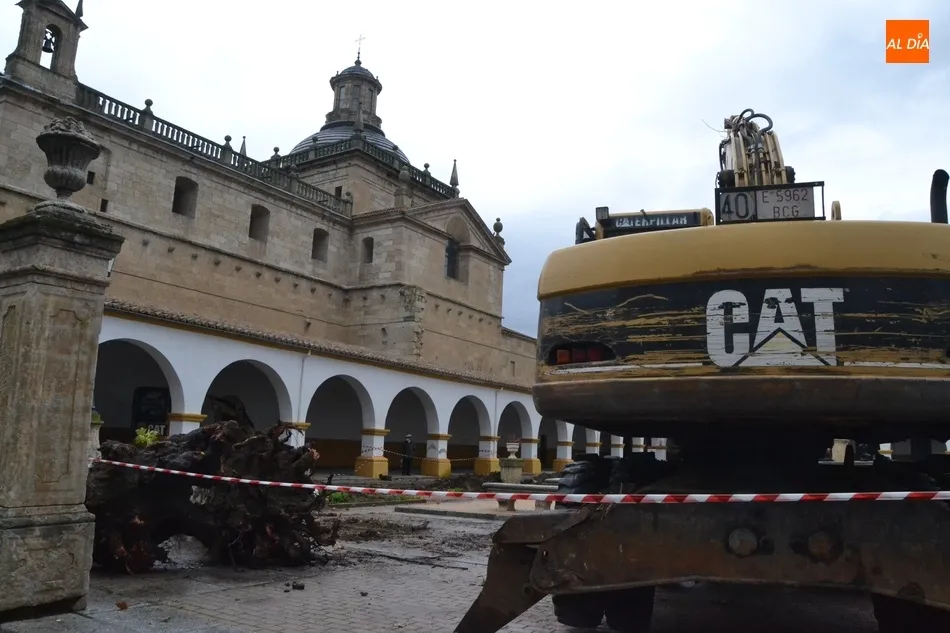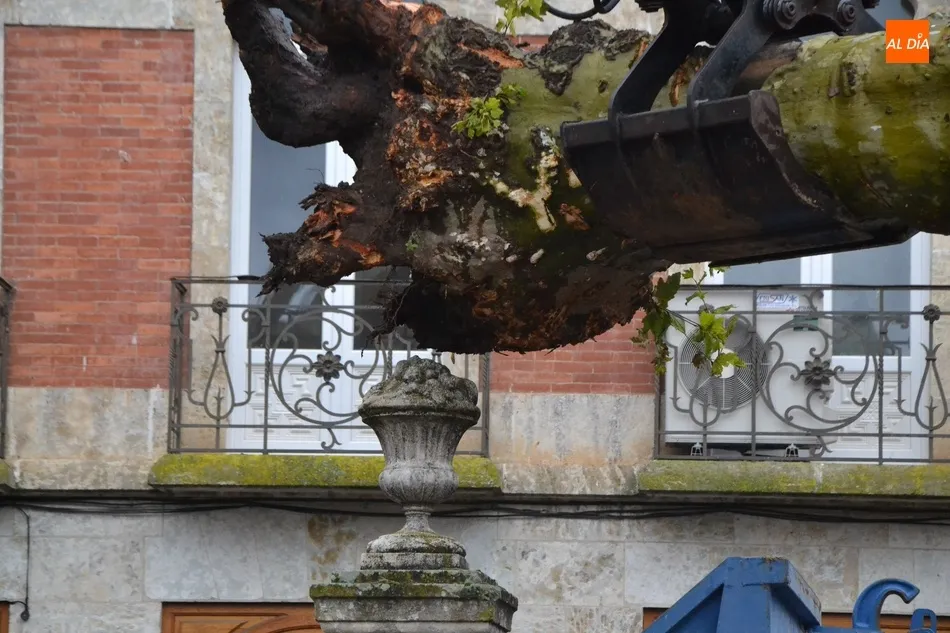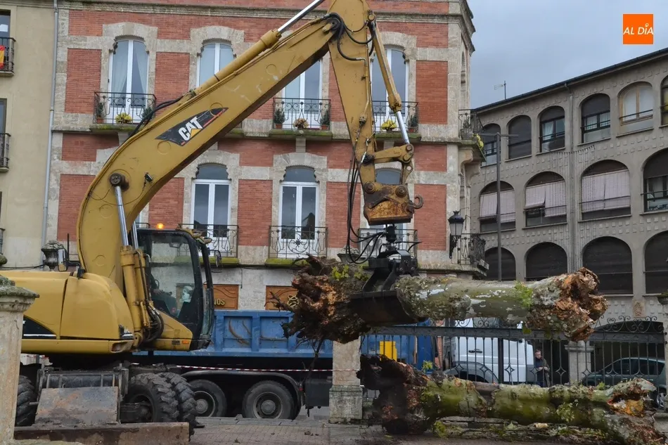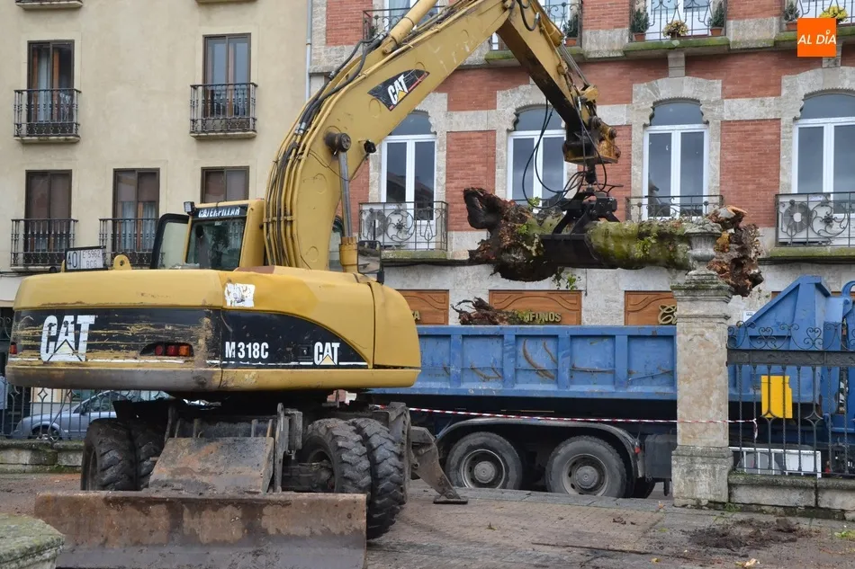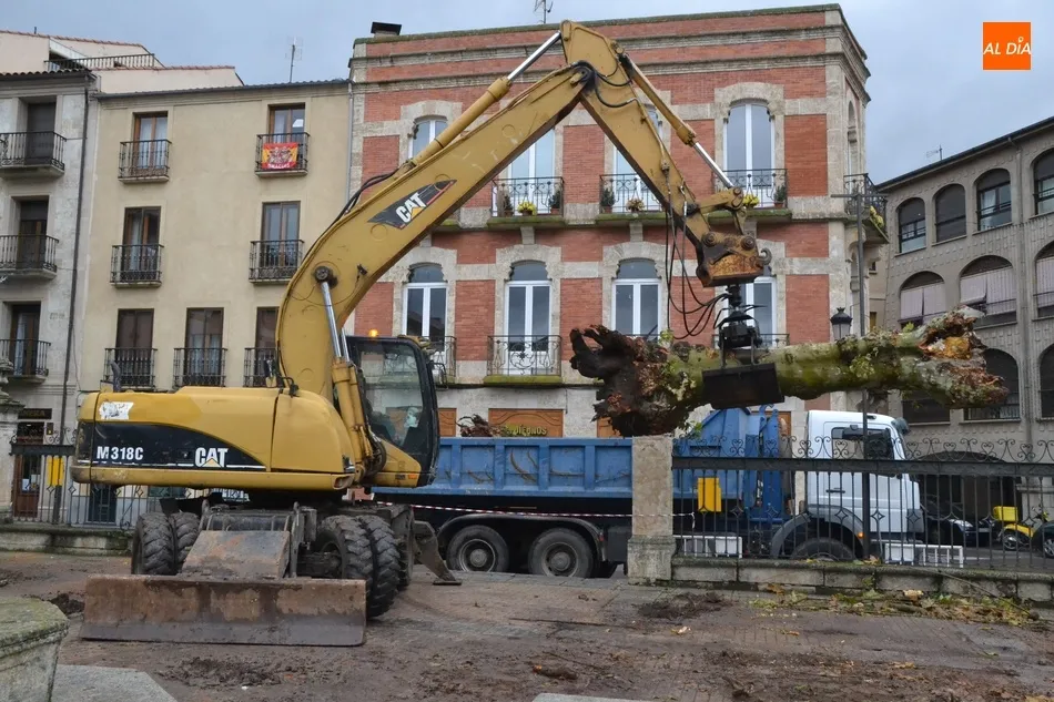 De este modo, en el lateral de la Plazuela más próximo a la Iglesia de Cerralbo, por el momento sólo se han podido retirar los árboles antiguos, una tarea que ha dado un poco más de ?guerra? que en el otro lateral. Exactamente, fue a las 12.25 horas de la mañana del jueves cuando dijo adiós a la Plazuela el último árbol antiguo, al ser montado en el camión por la retroexcavadora con la que se ha contado para esta operación.