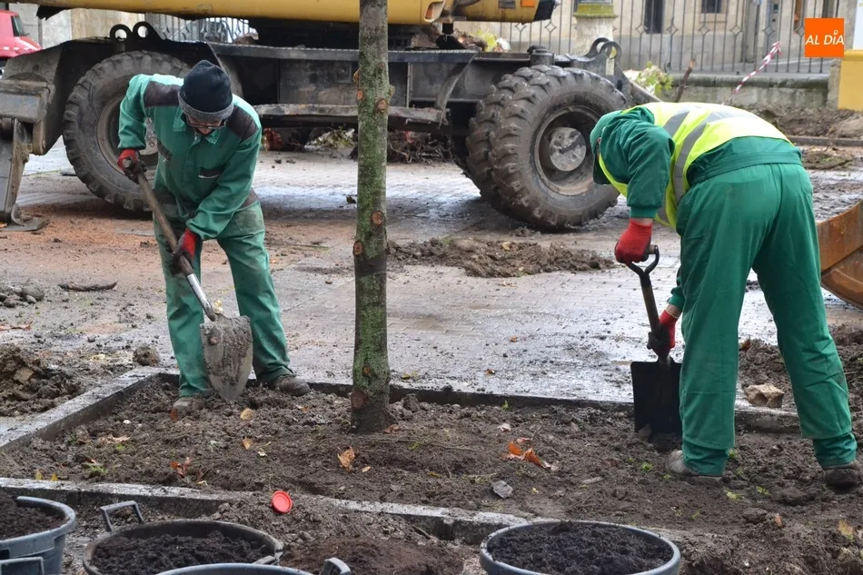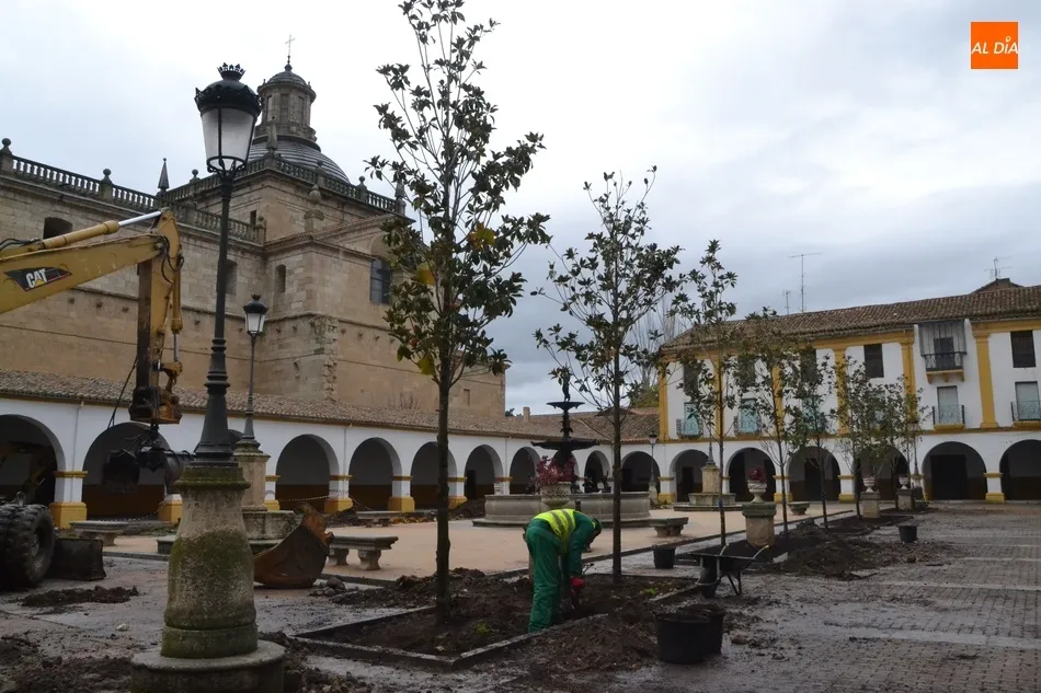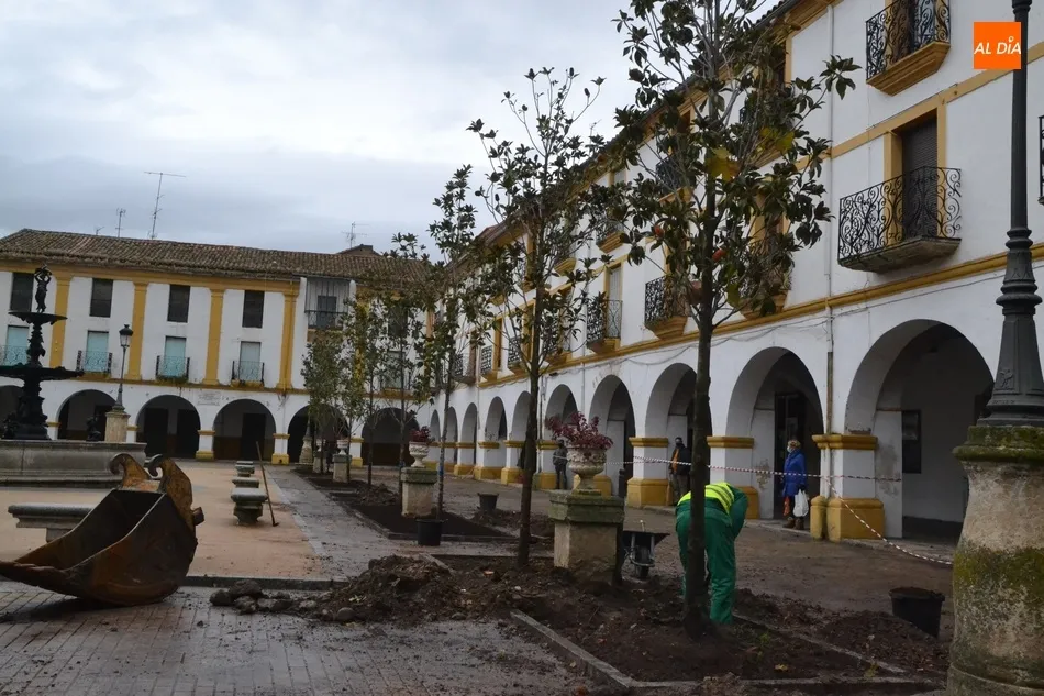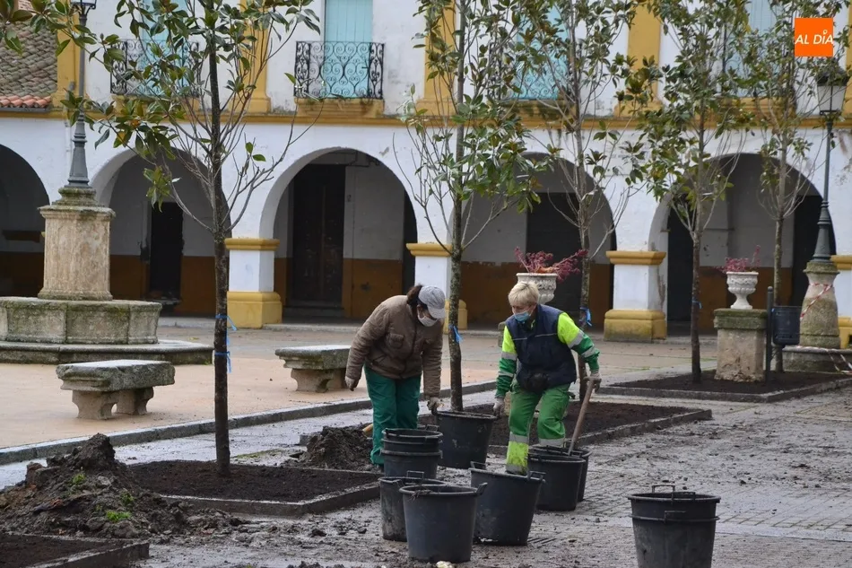 Al mismo tiempo, durante la mañana del jueves se terminaron de preparar los 9 magnolios que ya han podido ser traídos hasta Ciudad Rodrigo y plantados en la Plazuela, y se cubrieron provisionalmente con tierra los huecos donde deben ir los 9 magnolios que faltan, que siempre que el tiempo lo permita, harán acto de presencia por la Plazuela la semana que viene, según explica José Manuel Jerez.