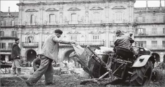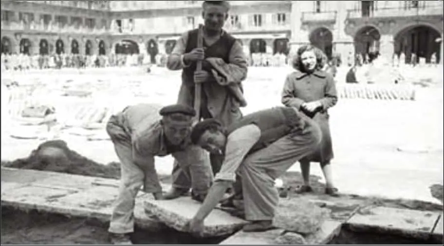 La plataforma Fotos Antiguas de Salamanca publica unas interesantes imágenes de autor desconocido que muestran los trabajos para la pavimentación de la Plaza Mayor en 1954.
