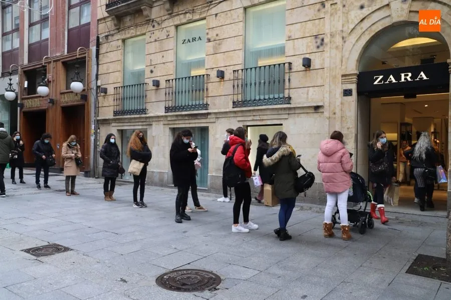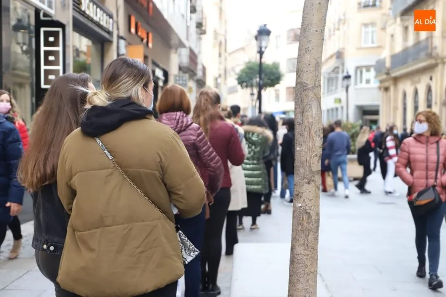 El famoso ?black friday? ha provocado colas de clientes en las principales calles comerciales de Salamanca. Y es que, al interés de los clientes por las ofertas y promociones hay que unir los límites de aforos, con lo que, en muchos casos hay que esperar el turno en la vía pública. Todo esto ha llevado a una importante presencia de público en lugares como la calle Toro o la plaza Liceo, entre otras.