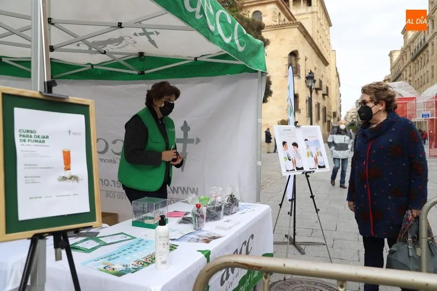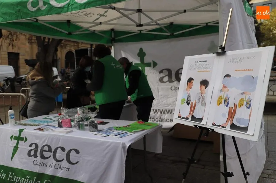 Una carpa en la plaza de los Bandos con integrantes de la AECC de Salamanca estaba informando esta mañana sobre los El tabaco es el responsable del 82% de los casos de cáncer de pulmón y del 30% de las muertes por ... | Imagen 1riesgos del tabaco y la importancia de la prevención en el cáncer de pulmón.